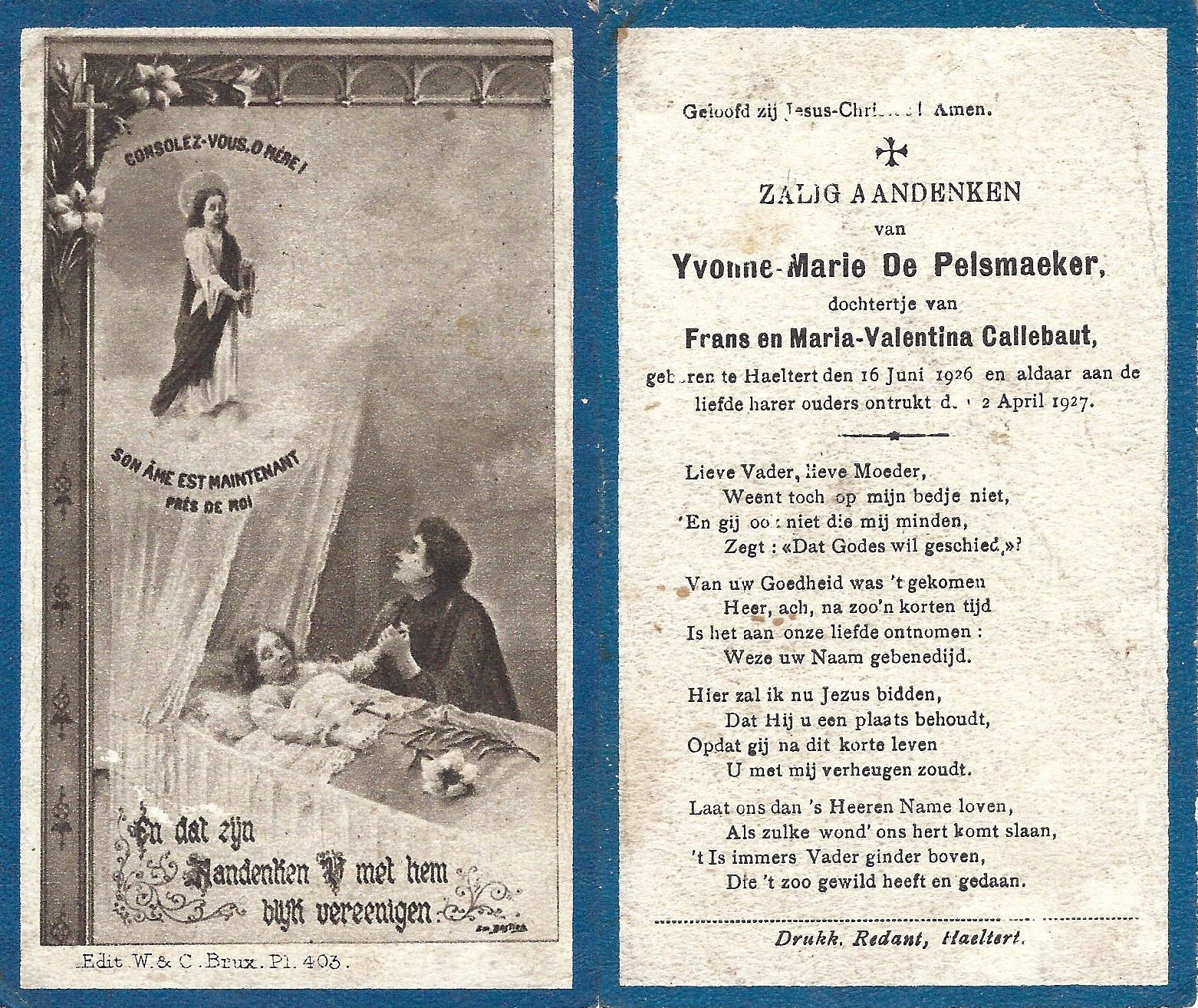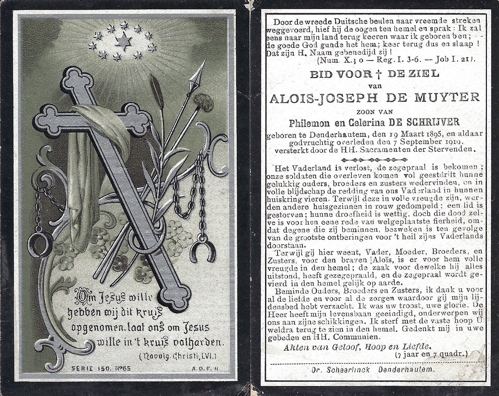 Bidprentjes inwoners beginnend letter D Haaltert – Denderhoutem – Kerksken – Heldergem