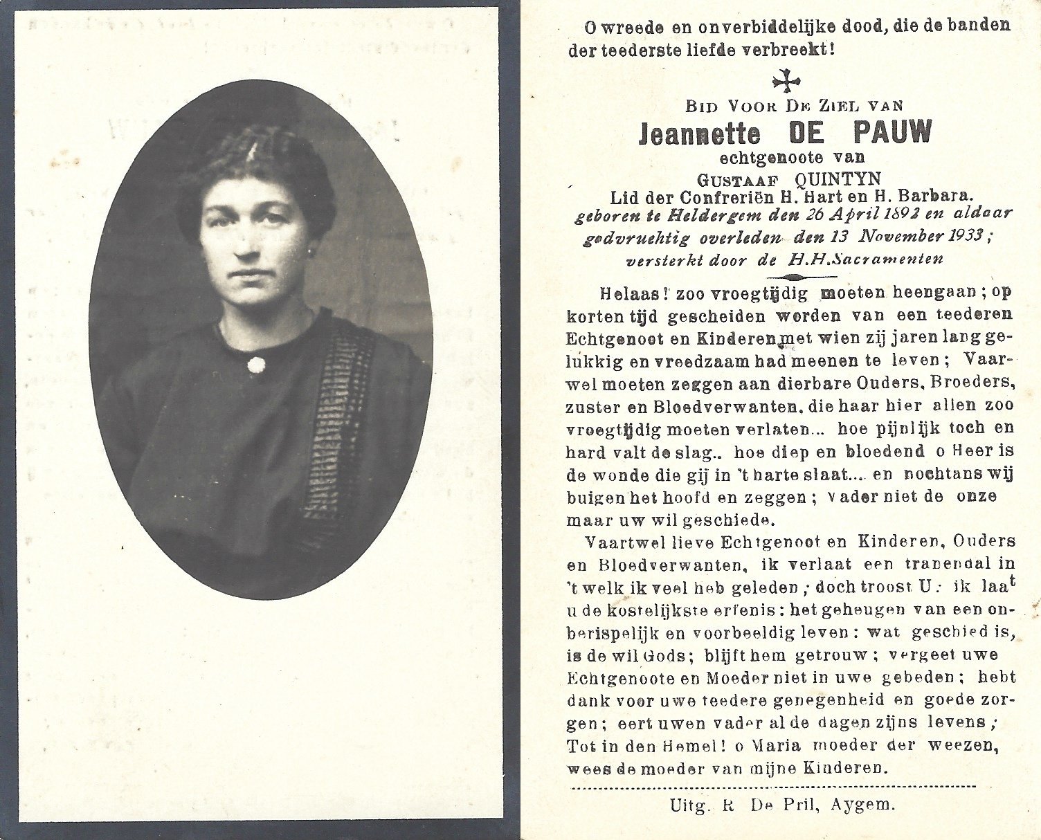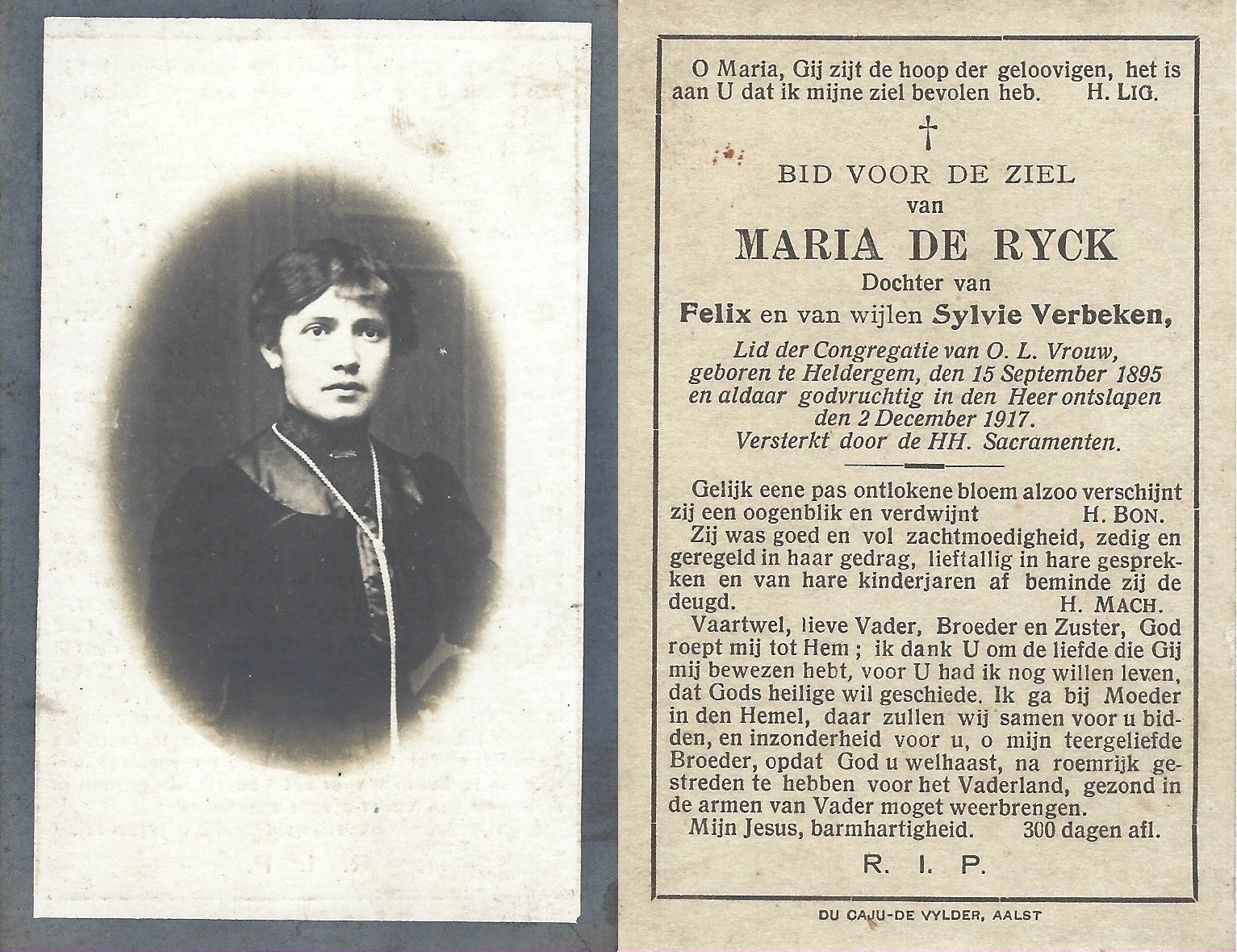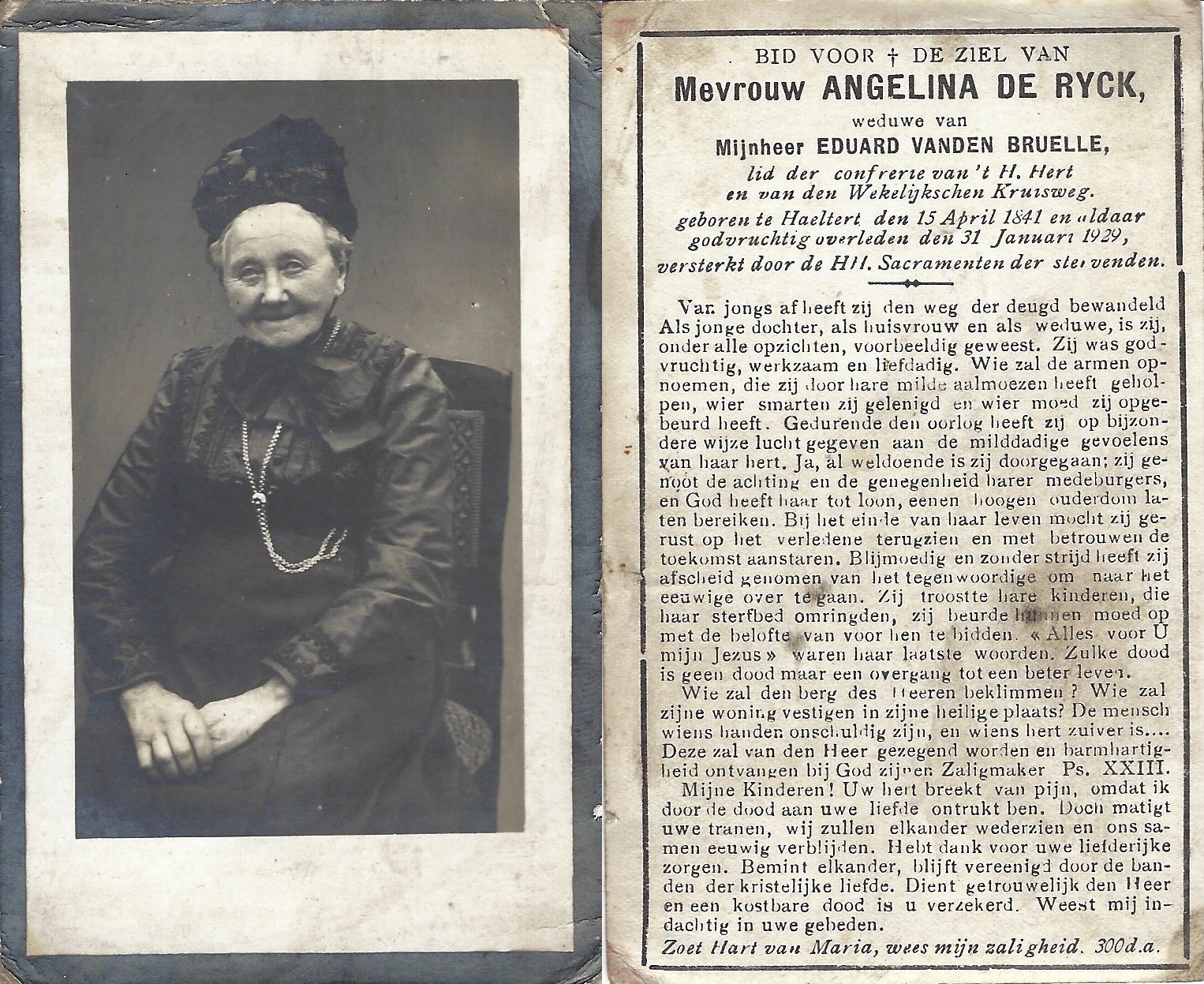De Vulder Maria ValentineVijverman JozefHeldergem22/06/1887Haaltert19/11/1963