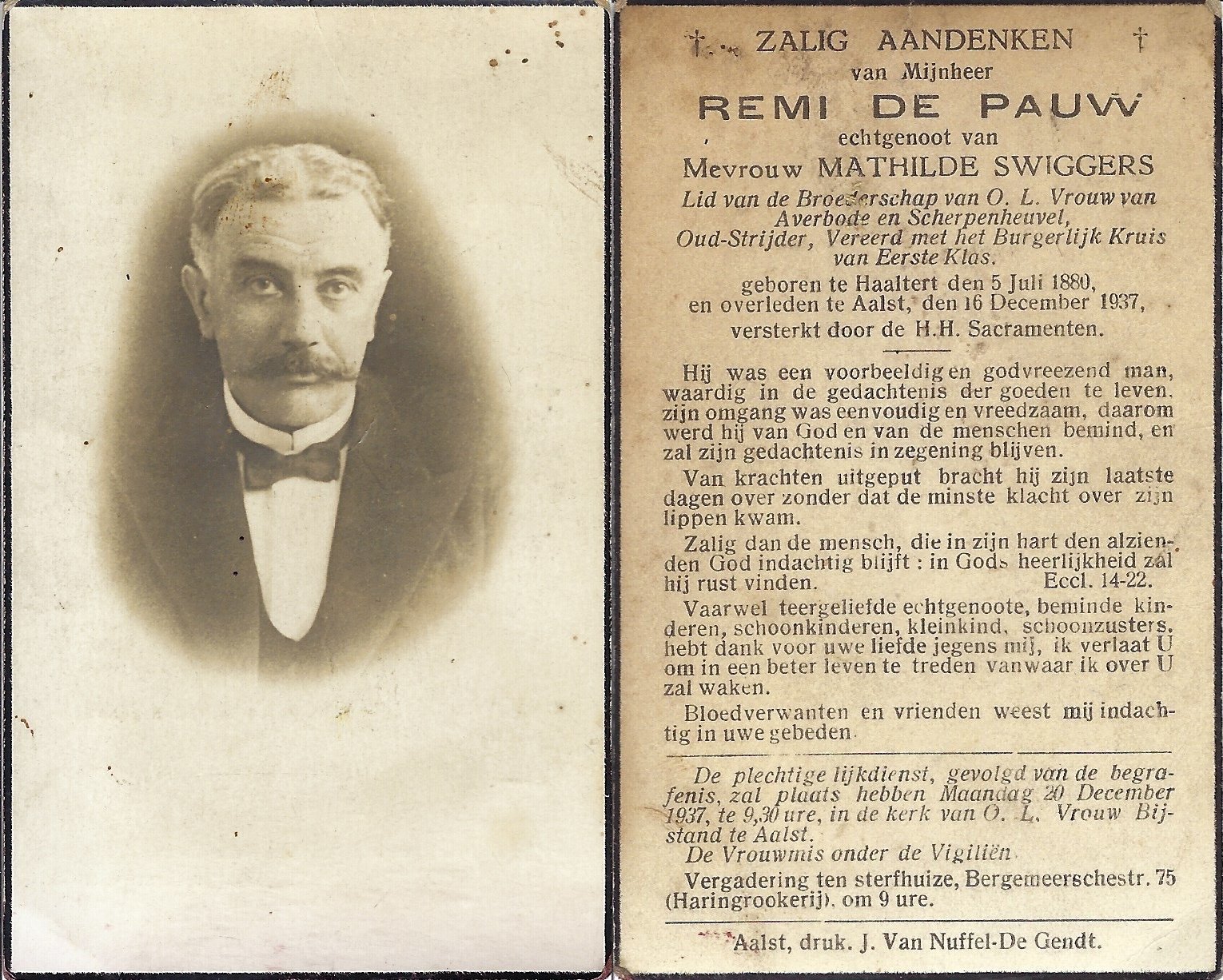 De Schrijver JozefDe Cooman Maria en Braeckman PhilomenaHaaltert09/09/1888Aalst18/06/1969
