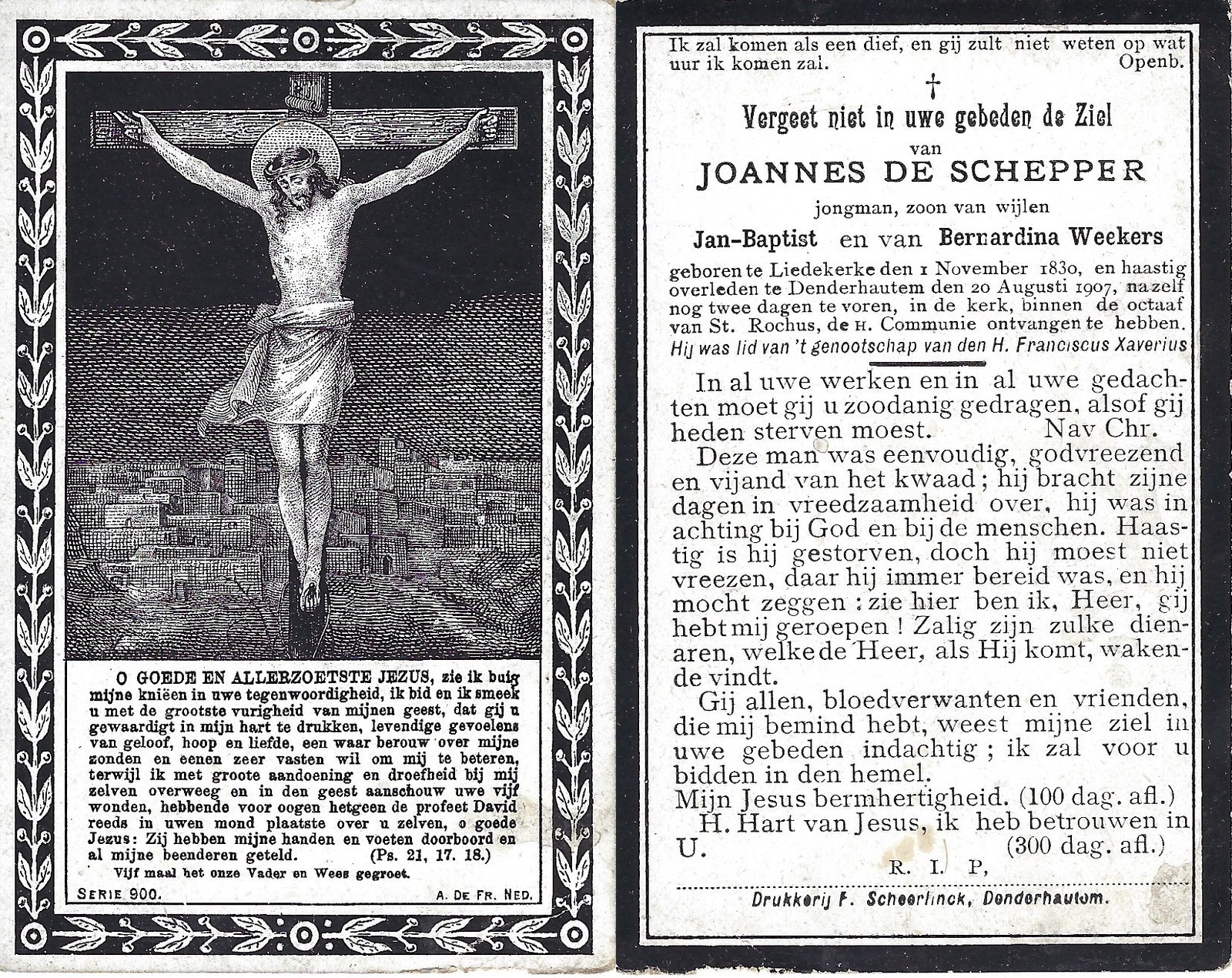 De Schepper JoannesLiedekerke01/11/1830Denderhoutem20/08/1907
