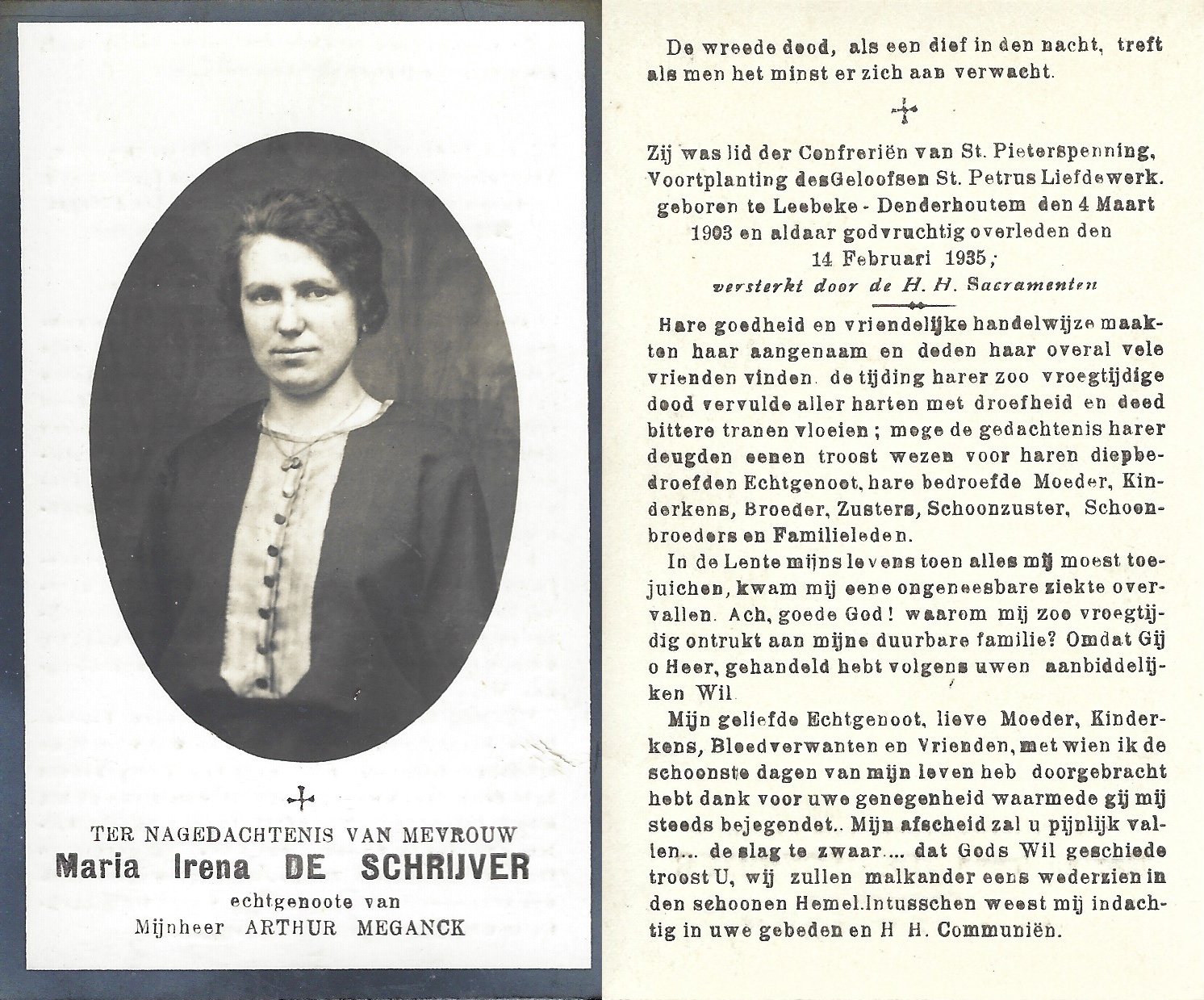 De Schrijver Maria IrenaMeganck ArthurDenderhoutem04/03/1903Denderhoutem14/02/1935