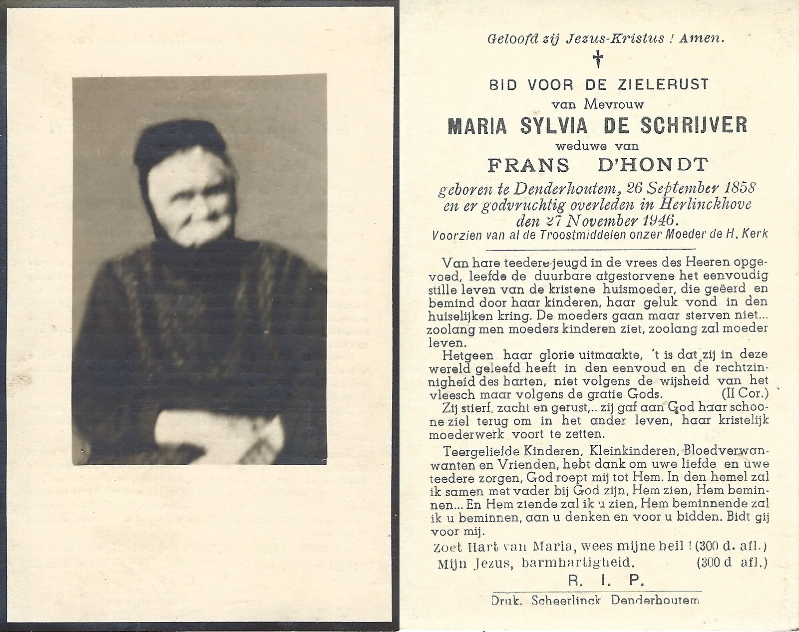 De Schrijver Maria SylviaD’Hondt FransDenderhoutem26/09/1858Denderhoutem27/11/1946