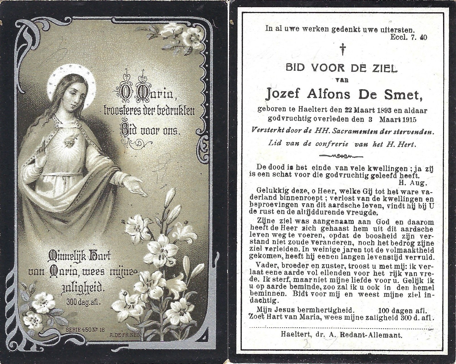 De Smet Jozef AlfonsHaaltert22/03/1893Haaltert03/03/1915