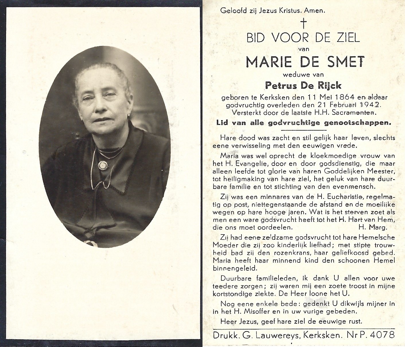 De Smet MarieDe Rijck PetrusKerksken11/05/1864Kerksken21/02/1942