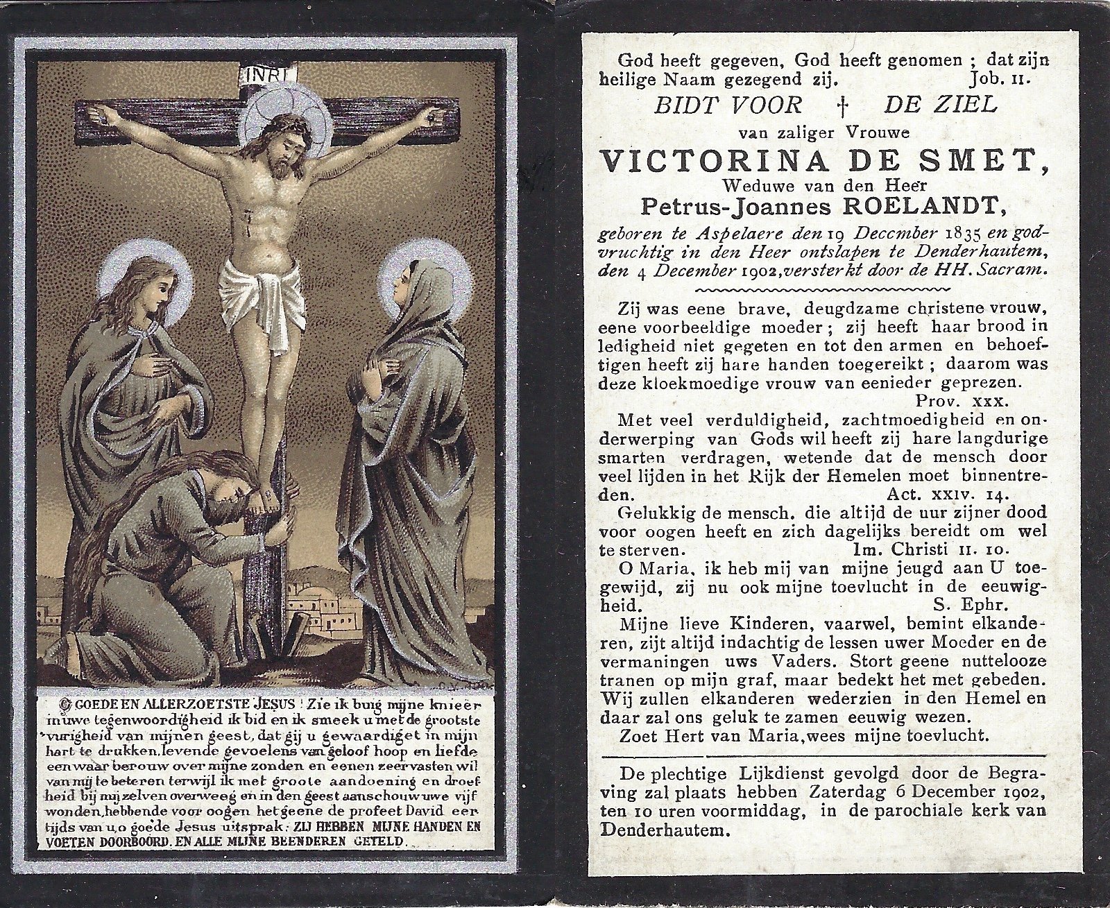 De Smet VictorinaRoelandt Petrus JoannesAspelare19/12/1835Denderhoutem04/12/1902