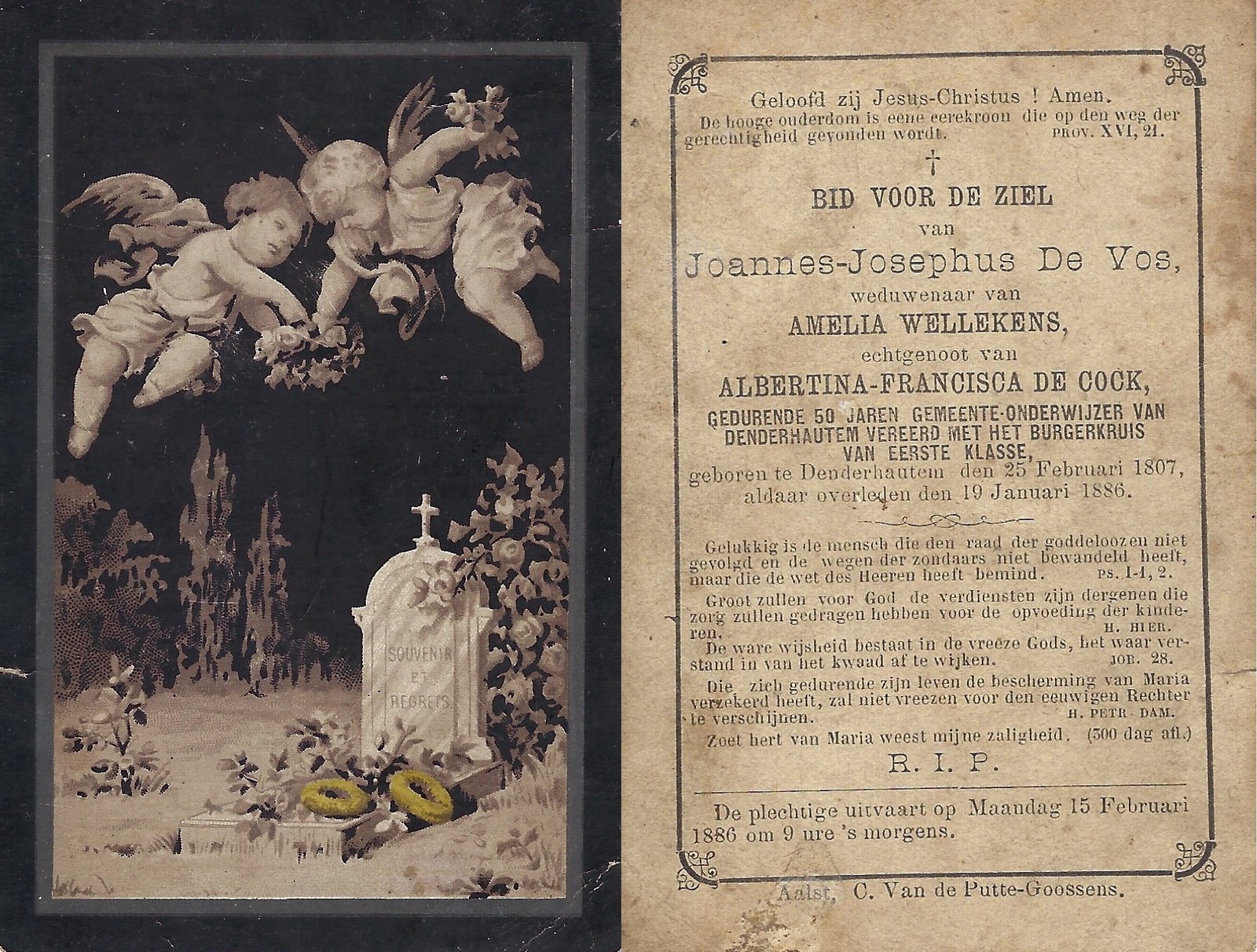 De Vos Joannes JosephusWellekens Amelia en De Cock AlbertinaDenderhoutem25/02/1807Denderhoutem19/01/1886