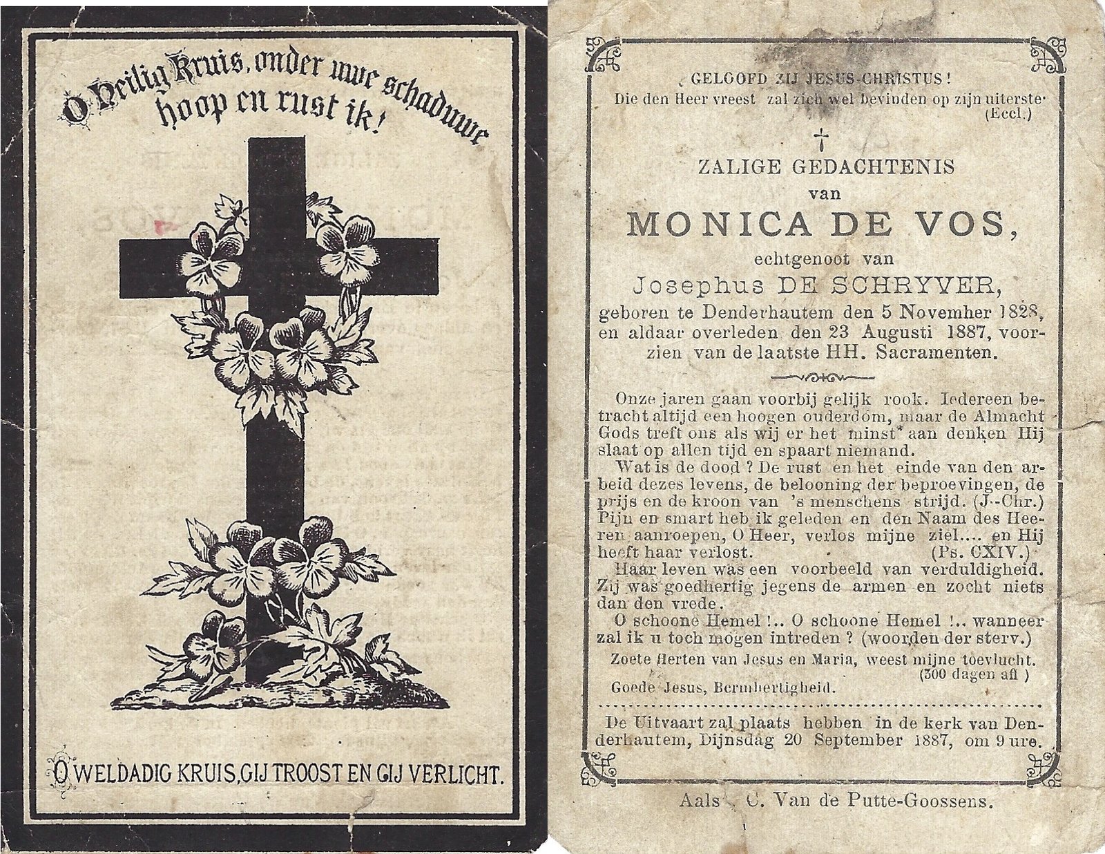 De Vos MonicaDe Schryver JosephusDenderhoutem05/11/1828Denderhoutem23/08/1887