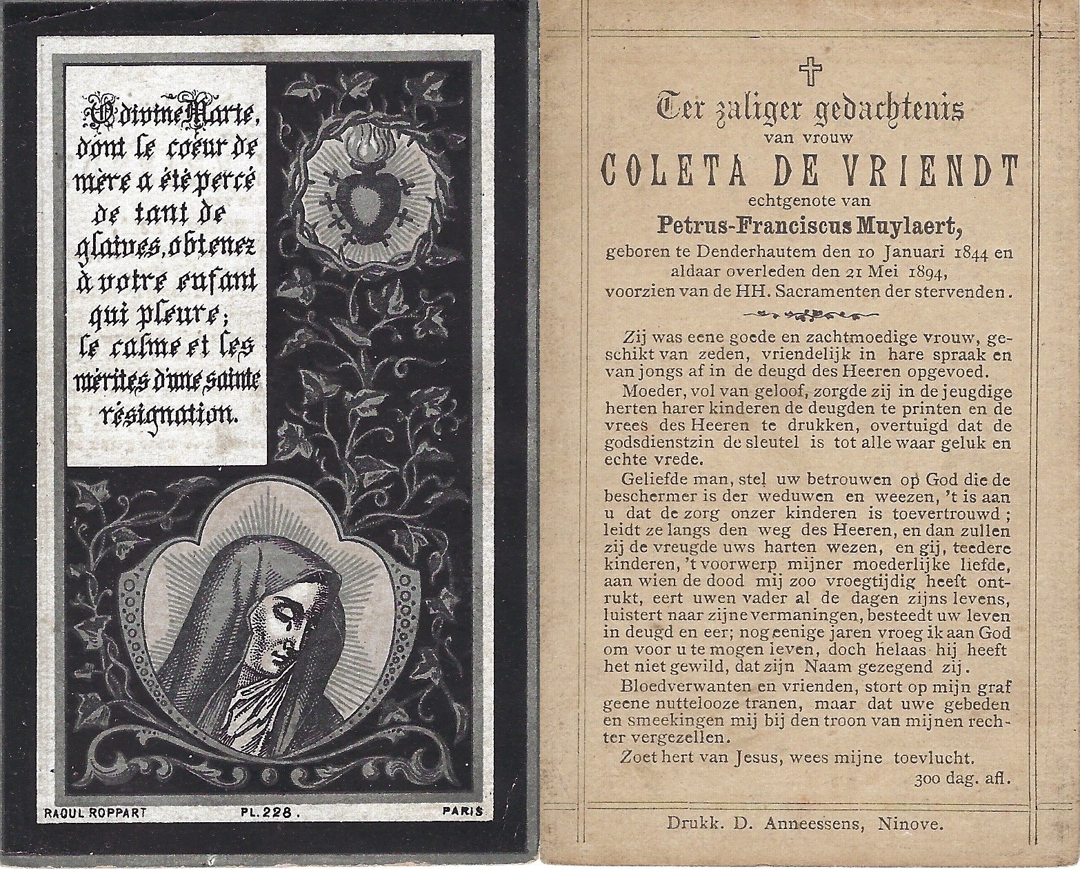 De Vriendt ColetaMuylaert Petrus FranciscusDenderhoutem10/01/1844Denderhoutem21/05/1894