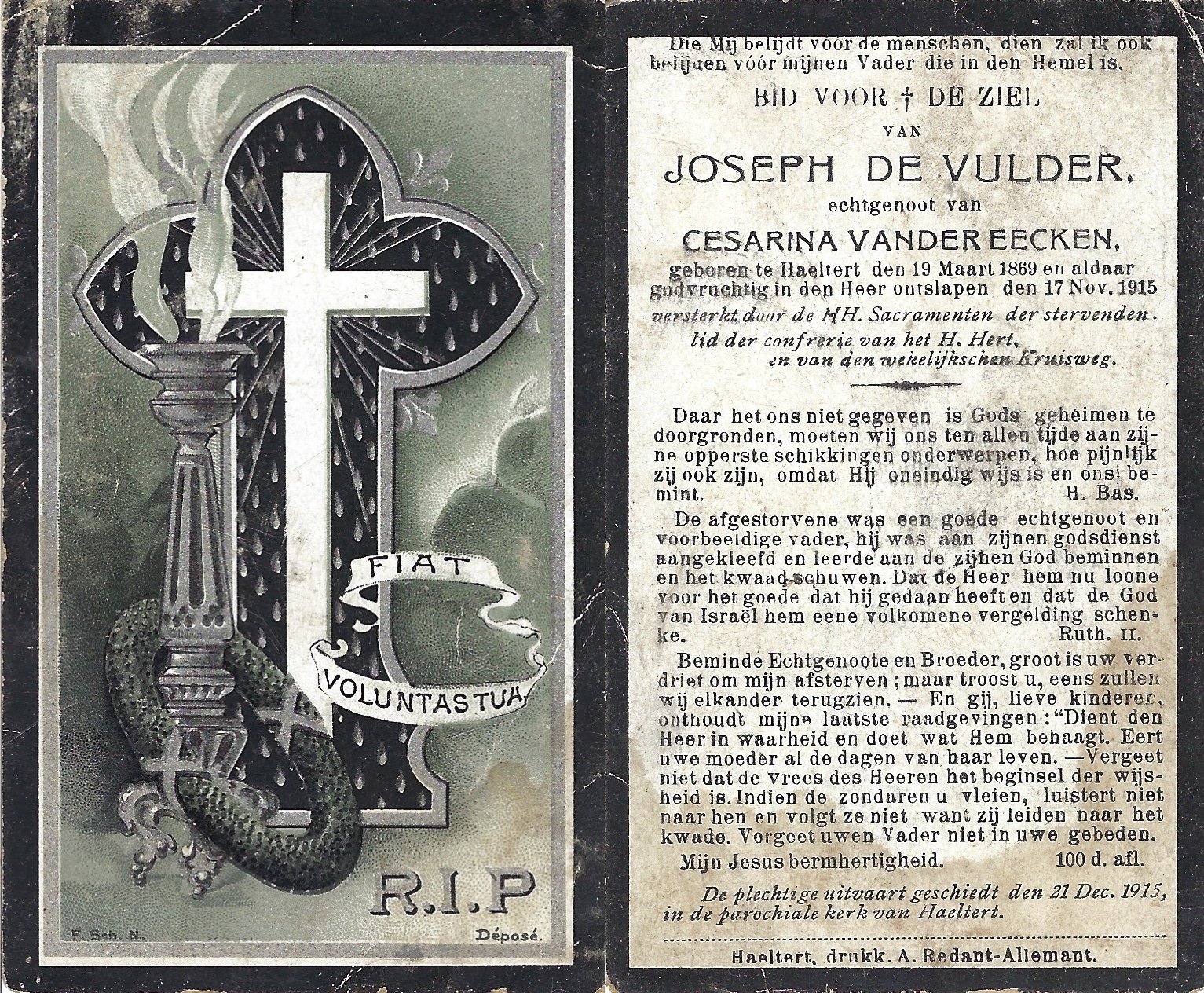 De Vulder JosephVander Eecken CesarinaHaaltert19/03/1869Haaltert17/11/1915