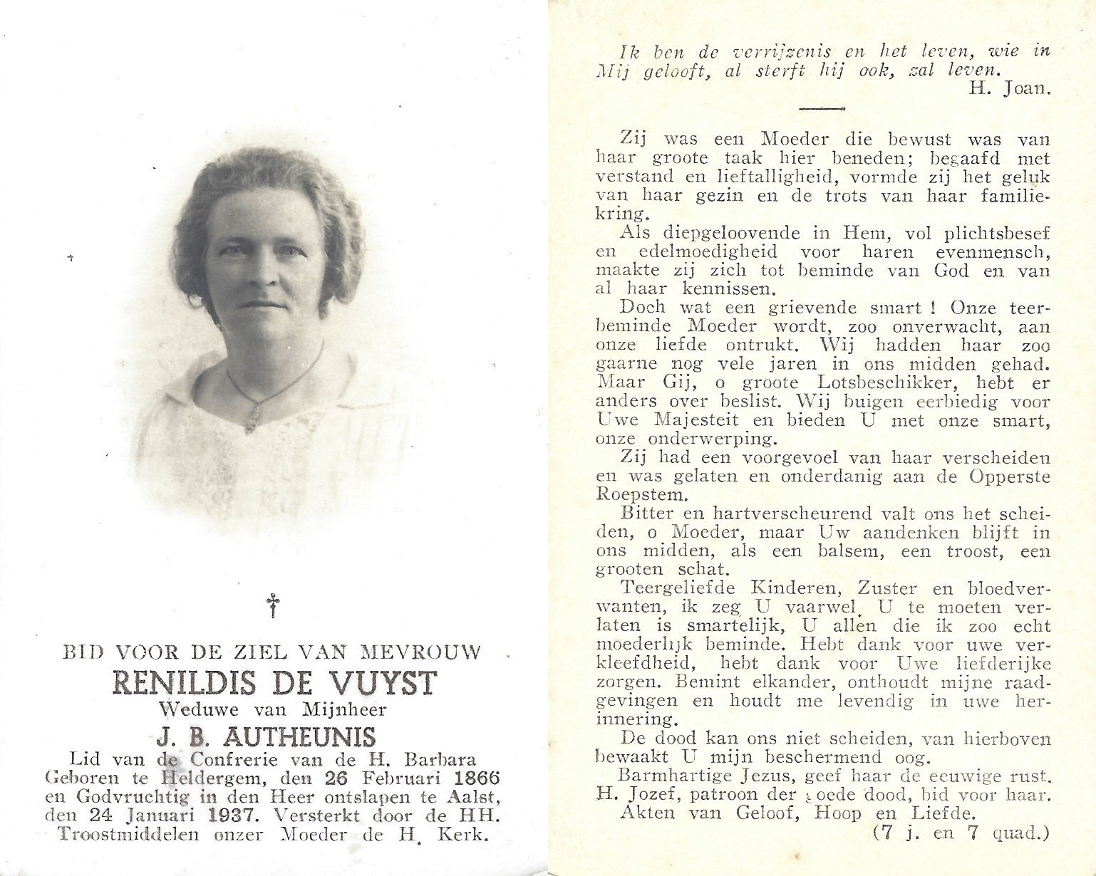 De Vuyst RenildisAutheunis Jean BaptisteHeldergem26/02/1866Aalst24/01/1937