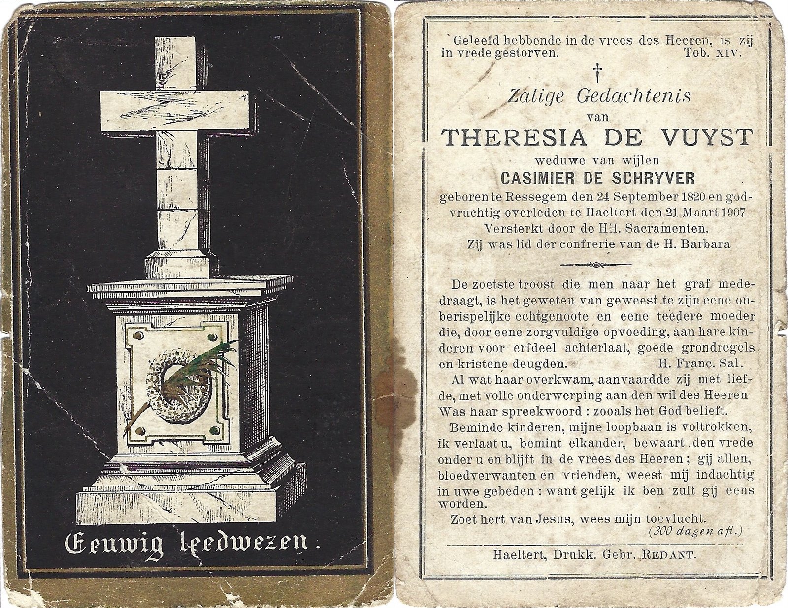 De Vuyst TheresiaDe Schryver CasimierRessegem24/09/1820Haaltert21/03/1907