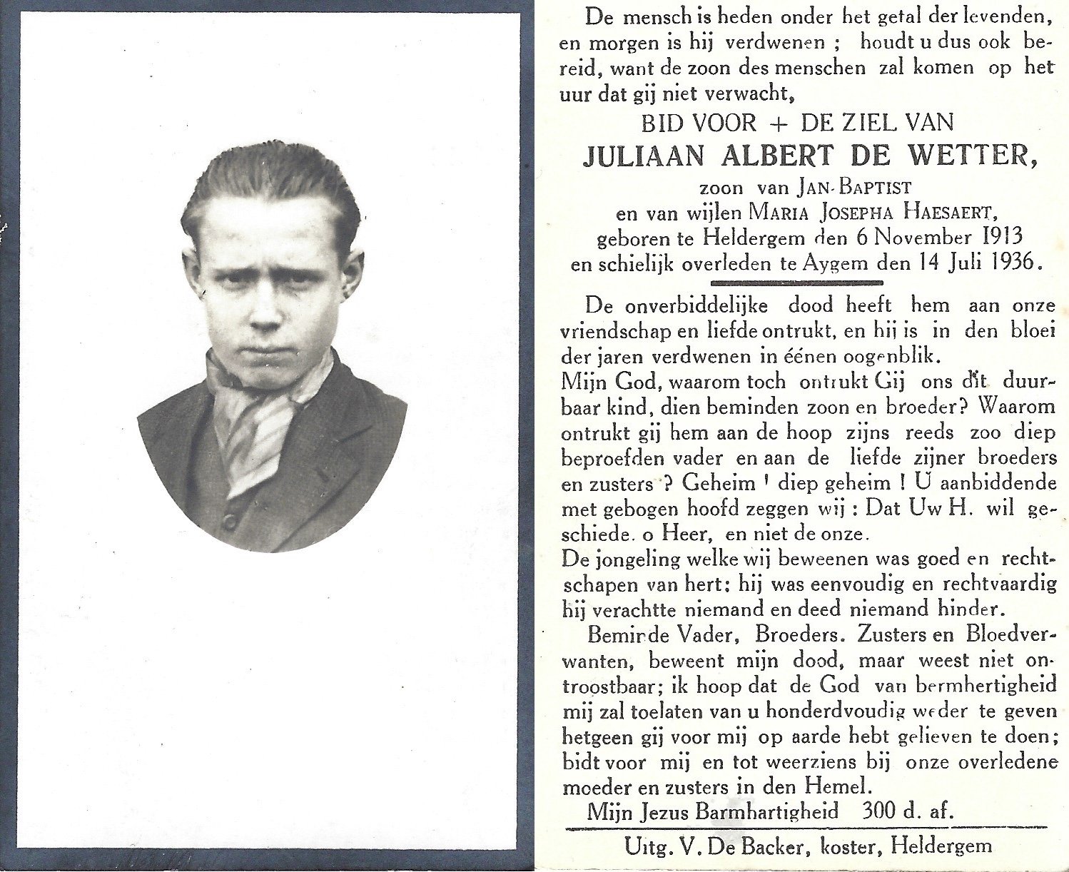 De Wetter Juliaan AlbertHeldergem06/11/1913Aaigem14/07/1936