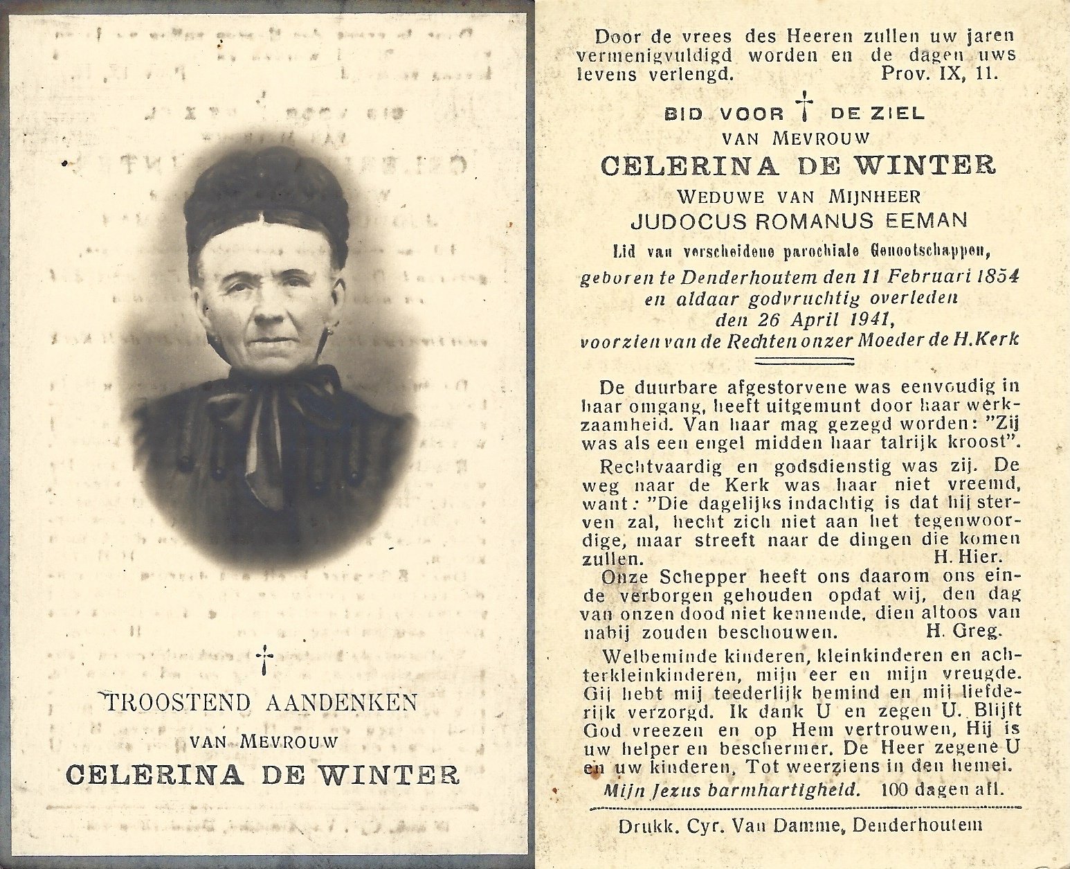 De Winter CelerinaEeman Jodocus RomanusDenderhoutem11/02/1854Denderhoutem26/04/1941