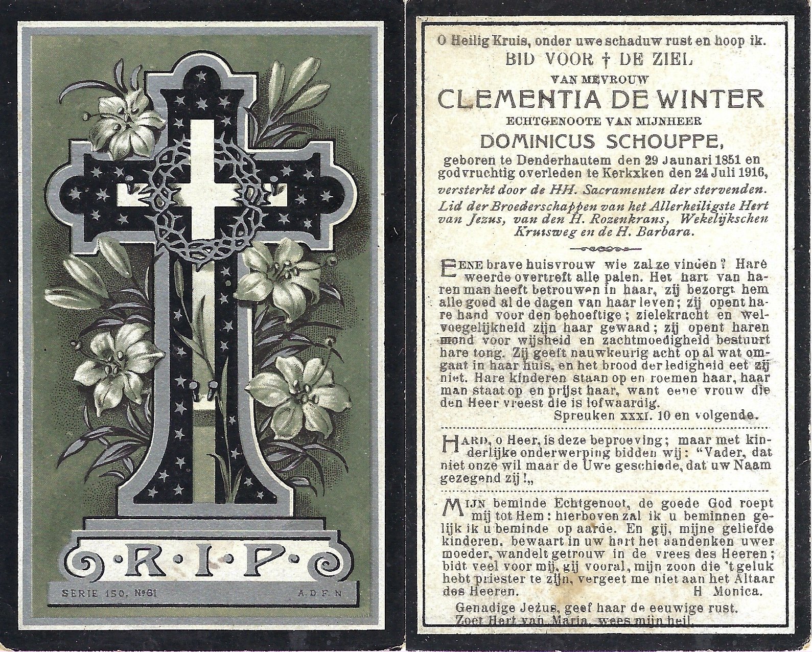 De Winter ClementinaSchouppe DominicusDenderhoutem29/01/1851Kerksken24/07/1916