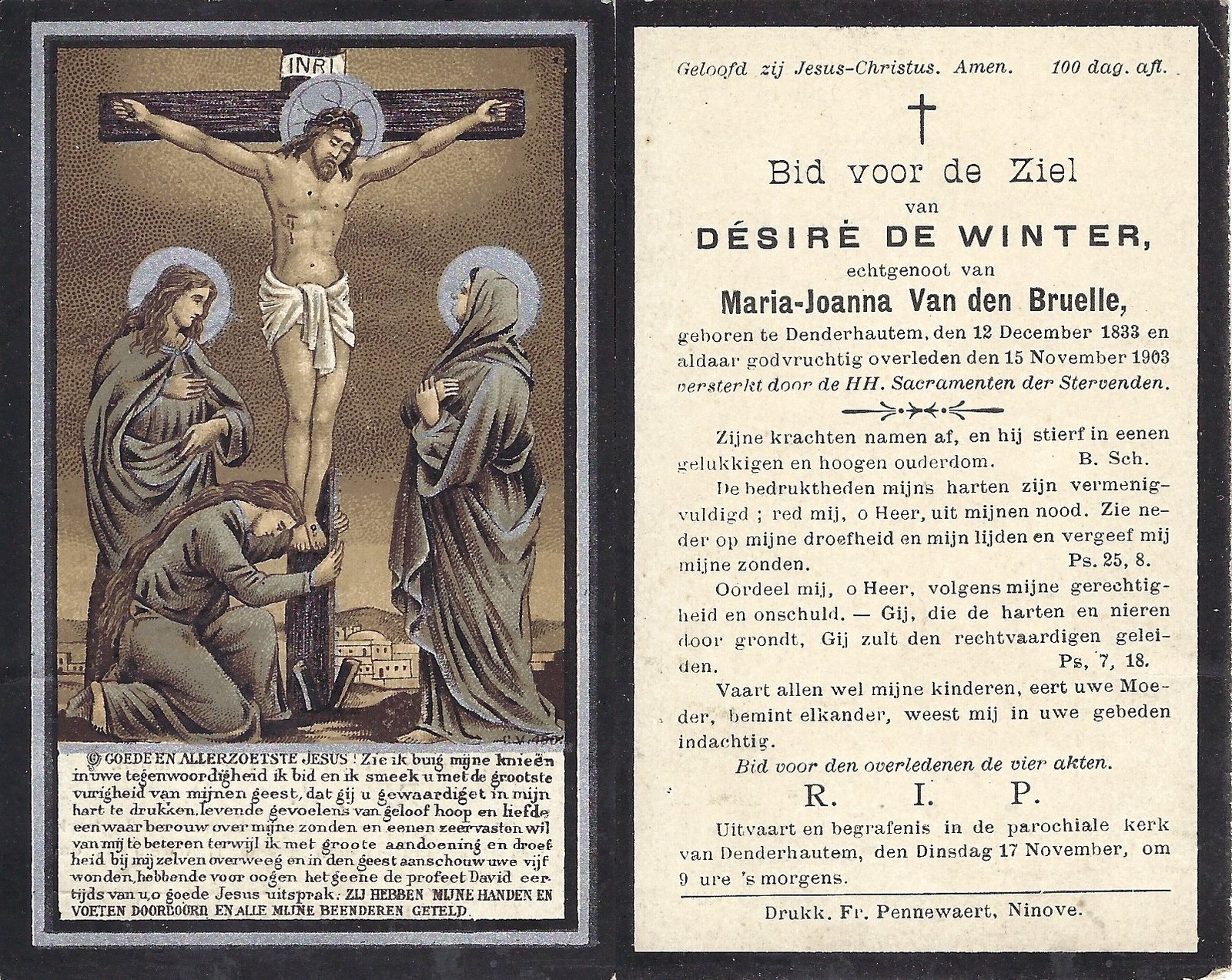 De Winter DésiréVan den Bruelle Maria JoannaDenderhoutem12/12/1833Denderhoutem15/11/1903