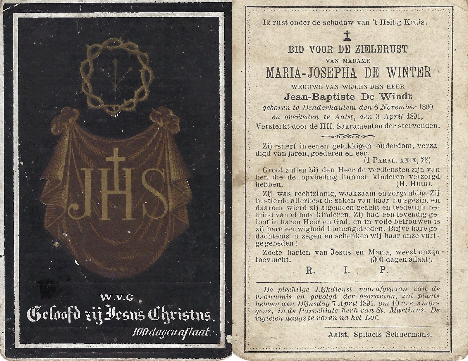 De Winter Maria JosephaDe Windt Jean BaptisteDenderhoutem06/11/1800Aalst03/04/1891