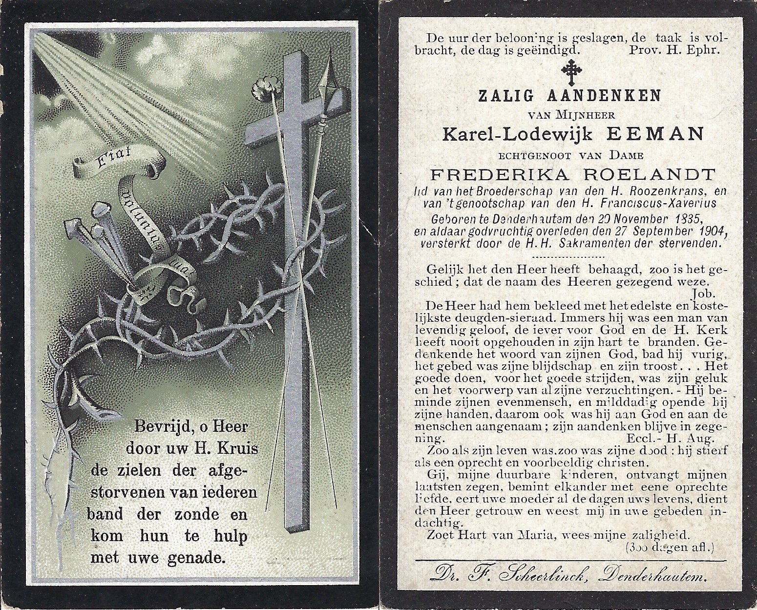 Eeman Karel LodewijkRoelandt FrederikaDenderhoutem20/11/1835Denderhoutem27/09/1904