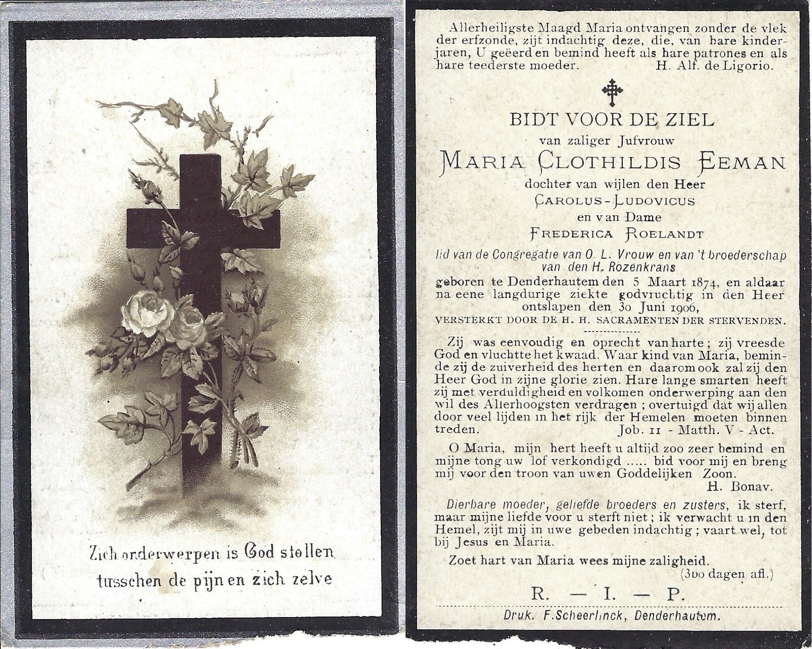 Eeman Maria ClothildisDenderhoutem05/03/1874Denderhoutem30/06/1906