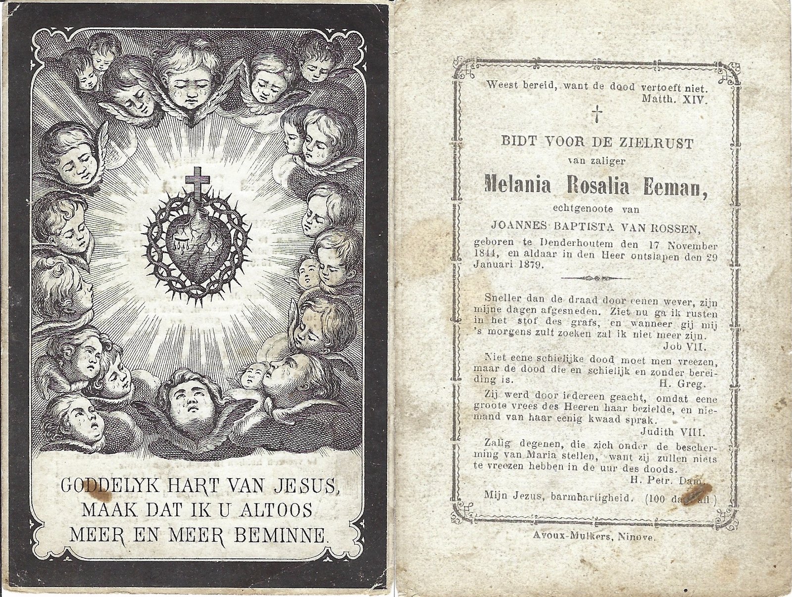 Eeman Melania RosaliaVan Rossen Joannes BaptistaDenderhoutem17/11/1844Denderhoutem29/01/1879