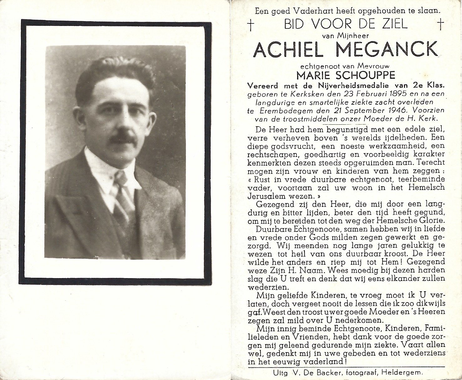 | Meganck Achiel | Schouppe Marie | Kerksken | 23/02/1895 | Erembodegem | 21/09/1946 |