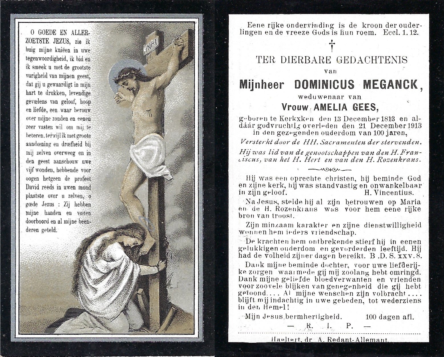 | Meganck Dominicus | Gees Amelia | Kerksken | 13/12/1813 | Kerksken | 21/12/1913 |