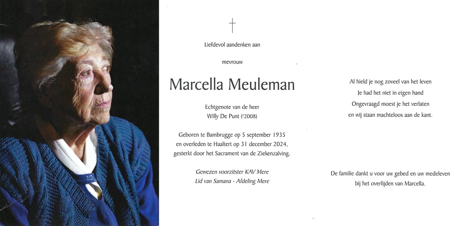| Meuleman Marcella | De Punt Willy | Bambrugge | 05/09/1935 | Haaltert | 31/12/2024 |