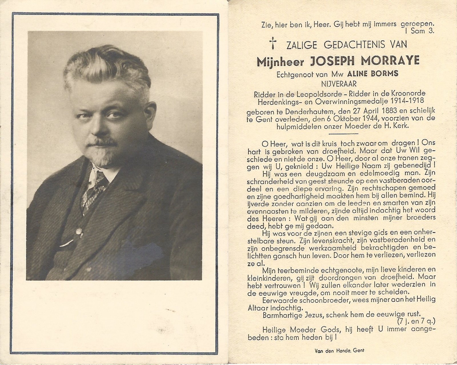 | Morraye Joseph | Borms Aline | Denderhoutem | 27/04/1883 | Gent | 06/10/1944 |