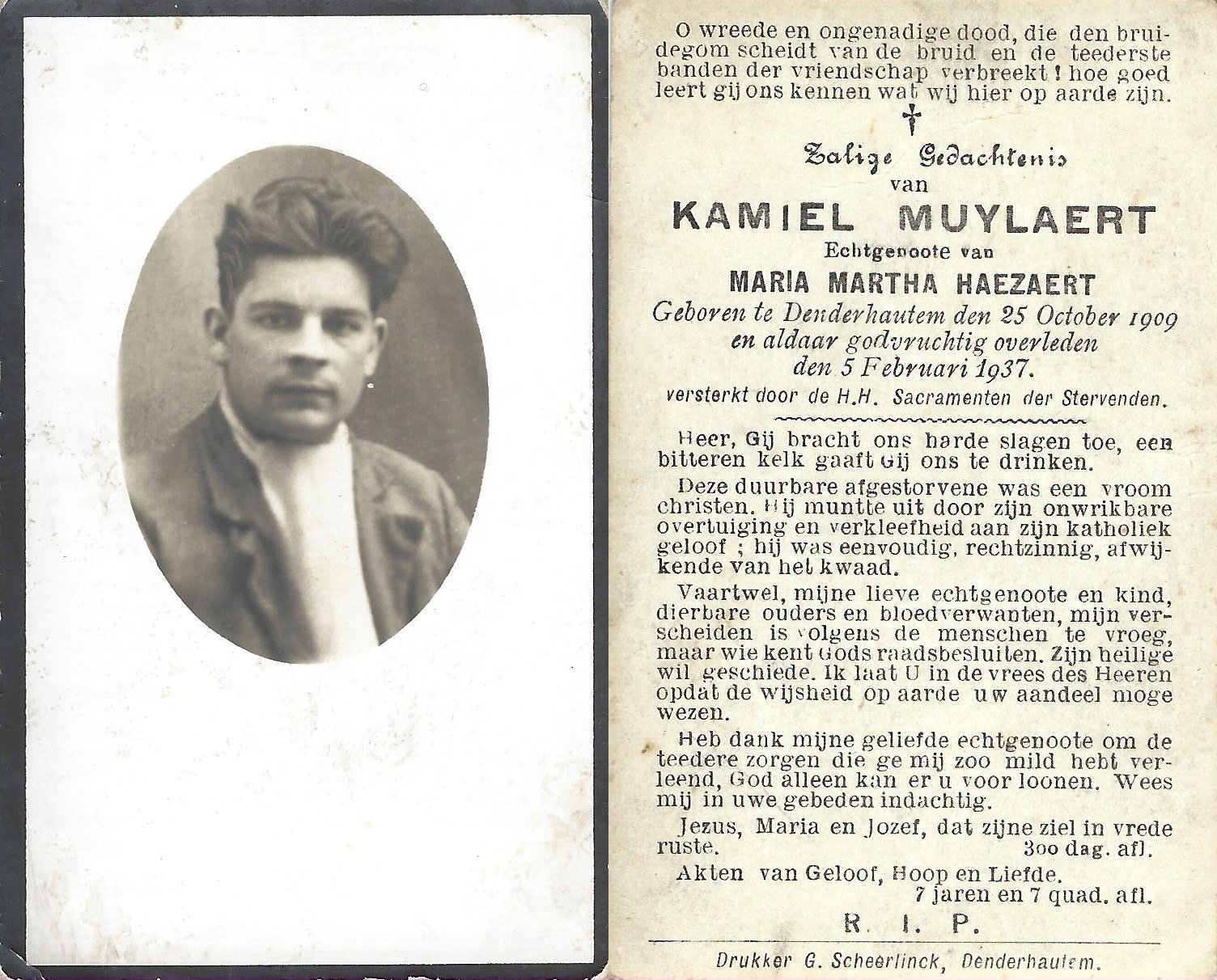 | Muylaert Kamiel | Haezaert Maria Martha | Denderhoutem | 25/10/1909 | Denderhoutem | 05/02/1937 |