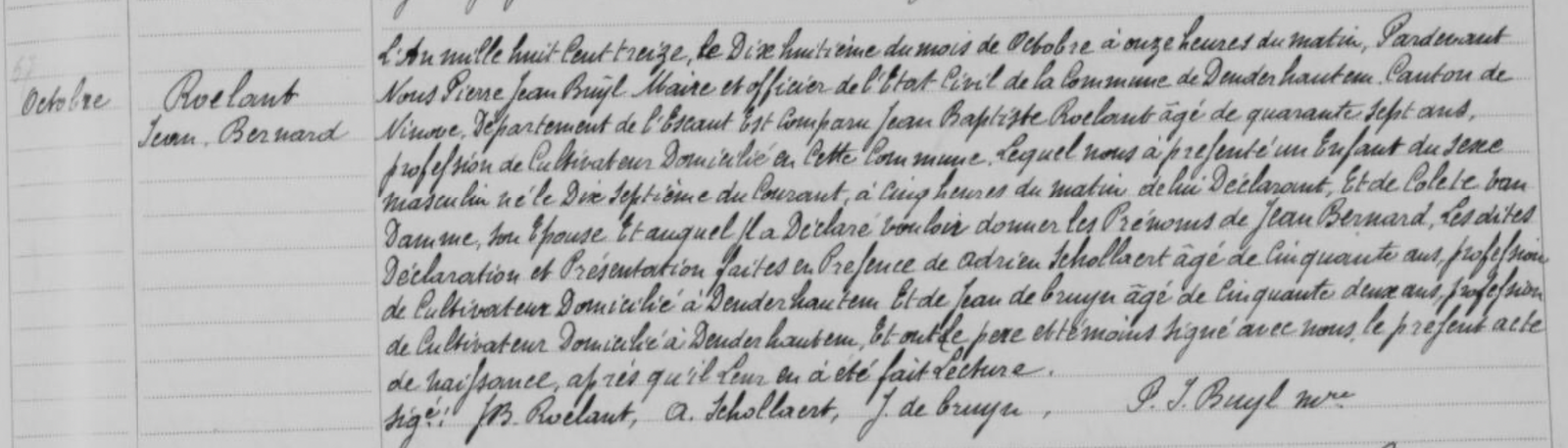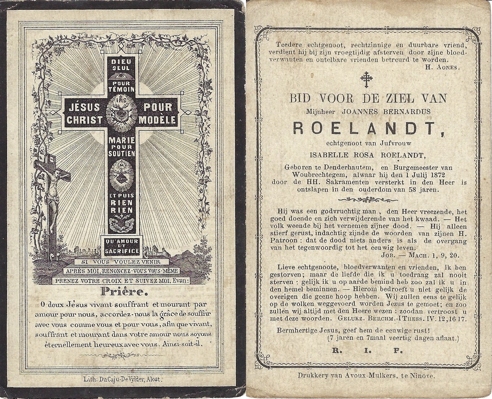 | Roelandt Joannes Bernardus | Roelandt Isabelle Rosa | Denderhoutem | 17/10/1813 | Woubrechtegem | 01/07/1872 |