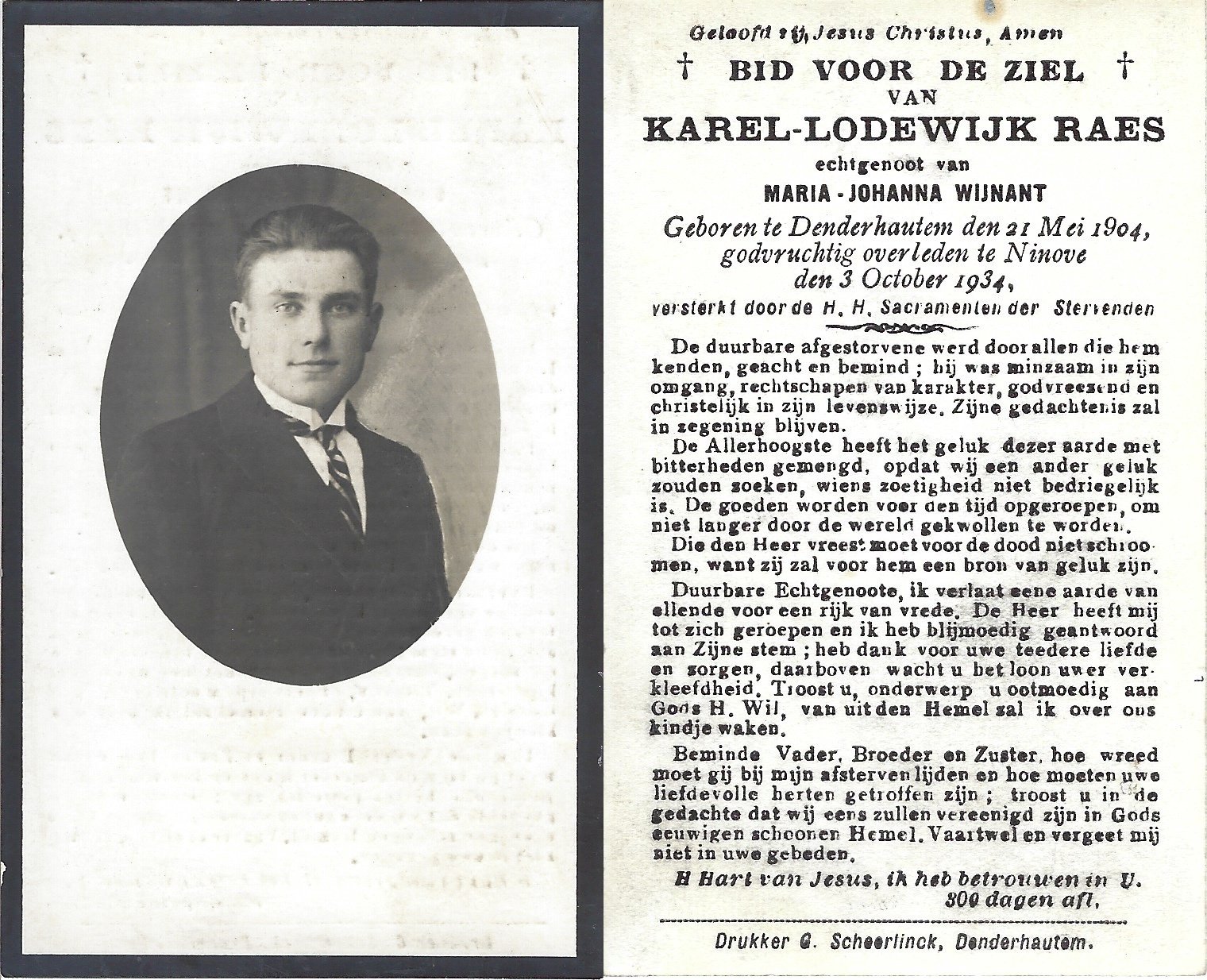 | Raes Karel Lodewijk | Wijnant Maria Johanna | Denderhoutem | 21/05/1904 | Ninove | 03/10/1934 |