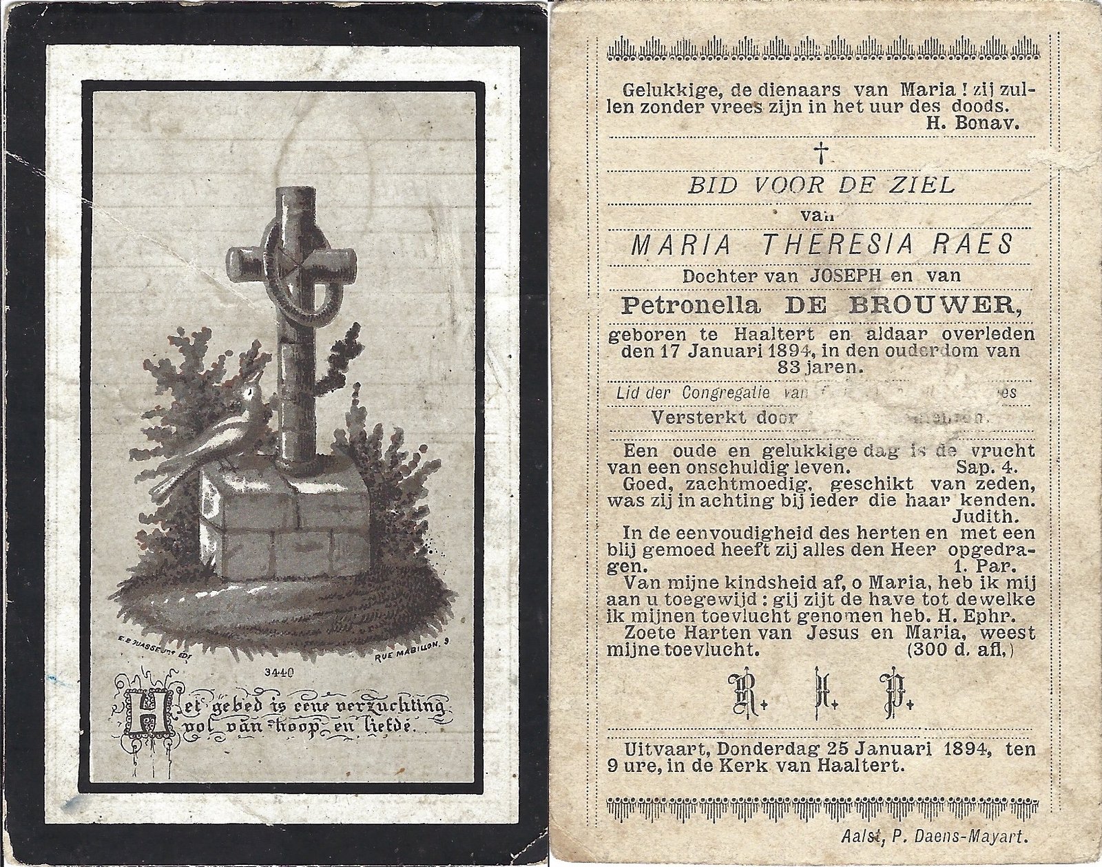 | Raes Maria Theresia | | Haaltert | 1811 | Haaltert | 17/01/1894 |