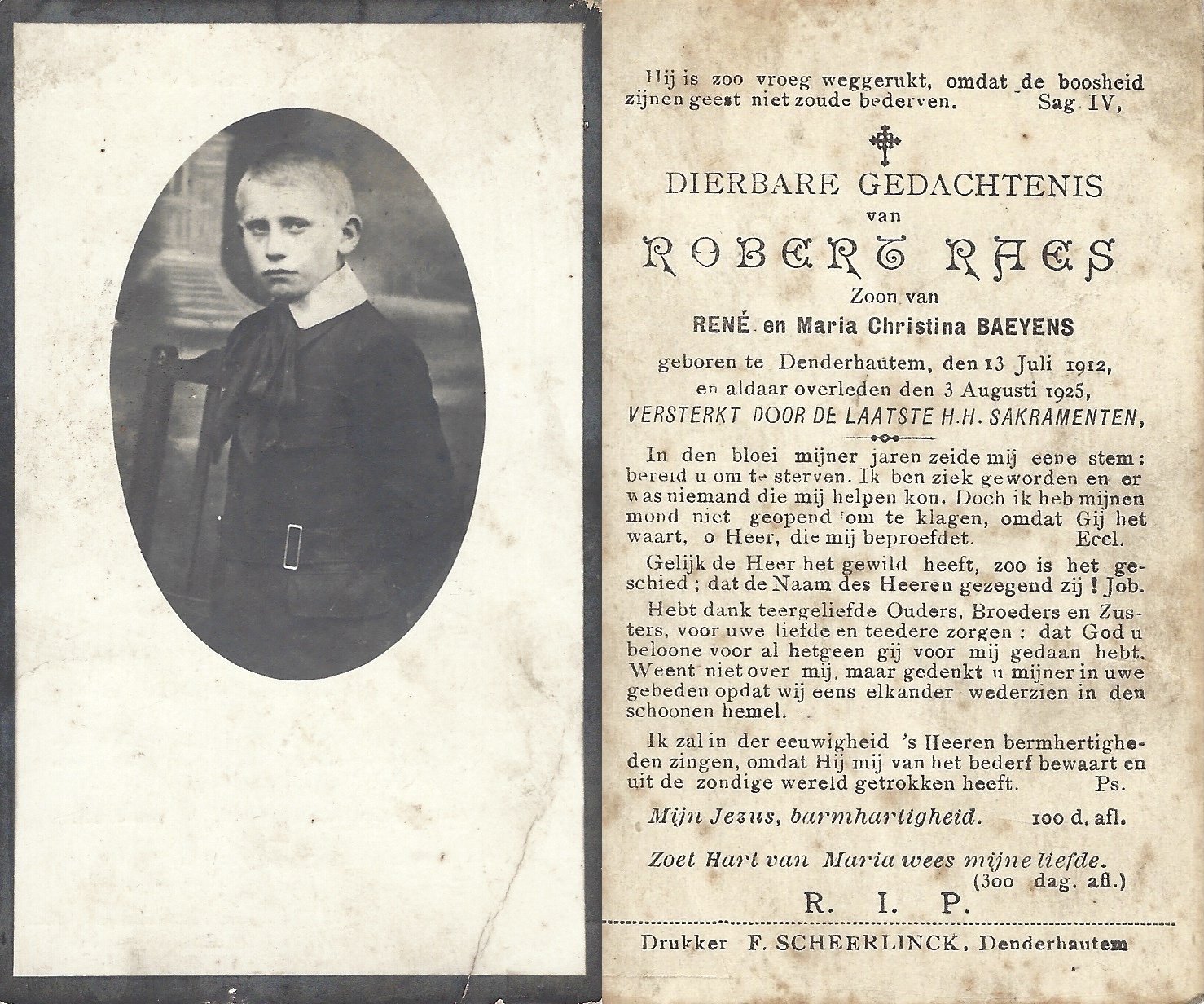 | Raes Robert | | Denderhoutem | 13/06/1912 | Denderhoutem | 03/08/1925 |