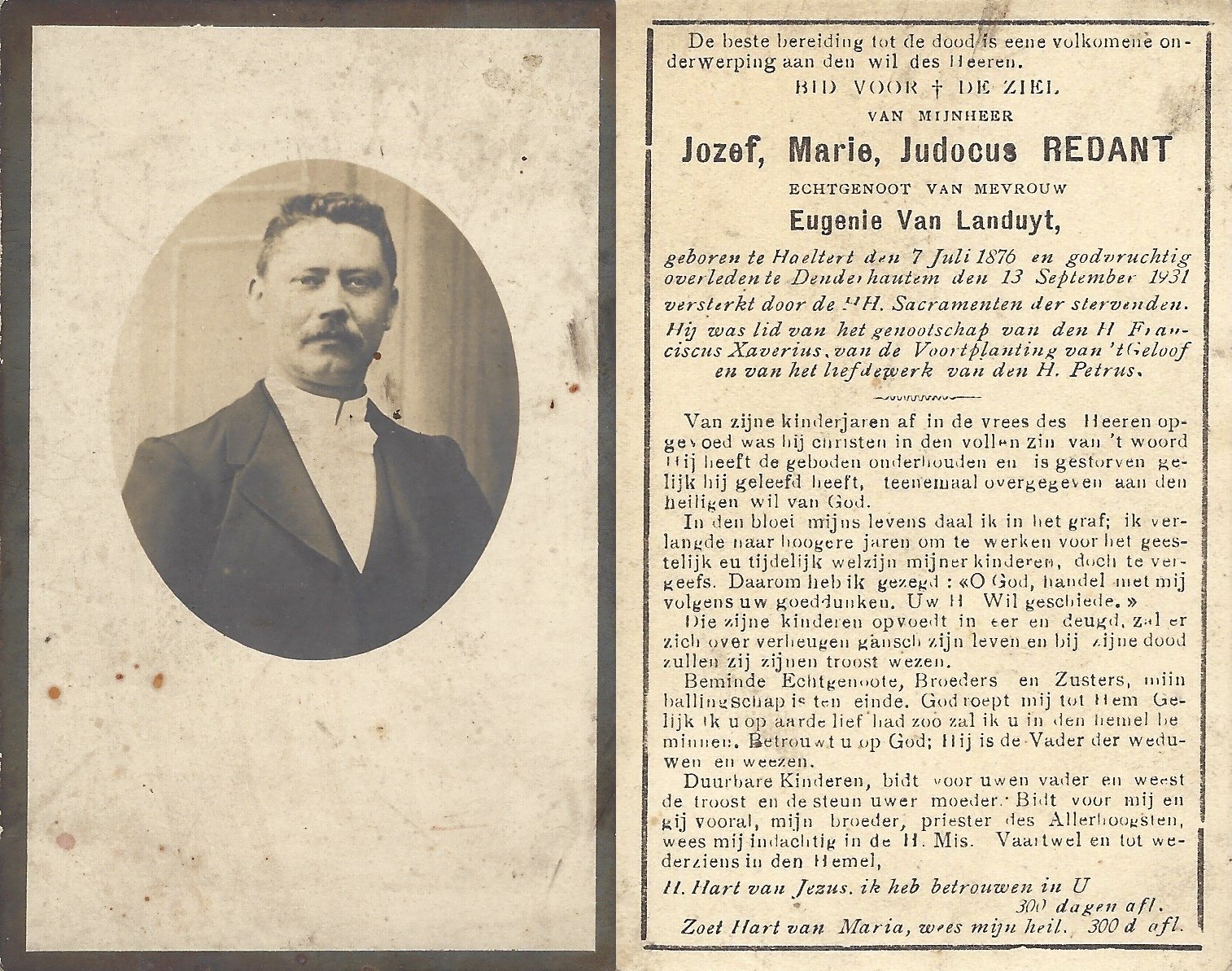 | Redant Jozef Maria Judocus | Van Landuyt Eugenie | Haaltert | 07/07/1876 | Denderhoutem | 13/09/1931 |