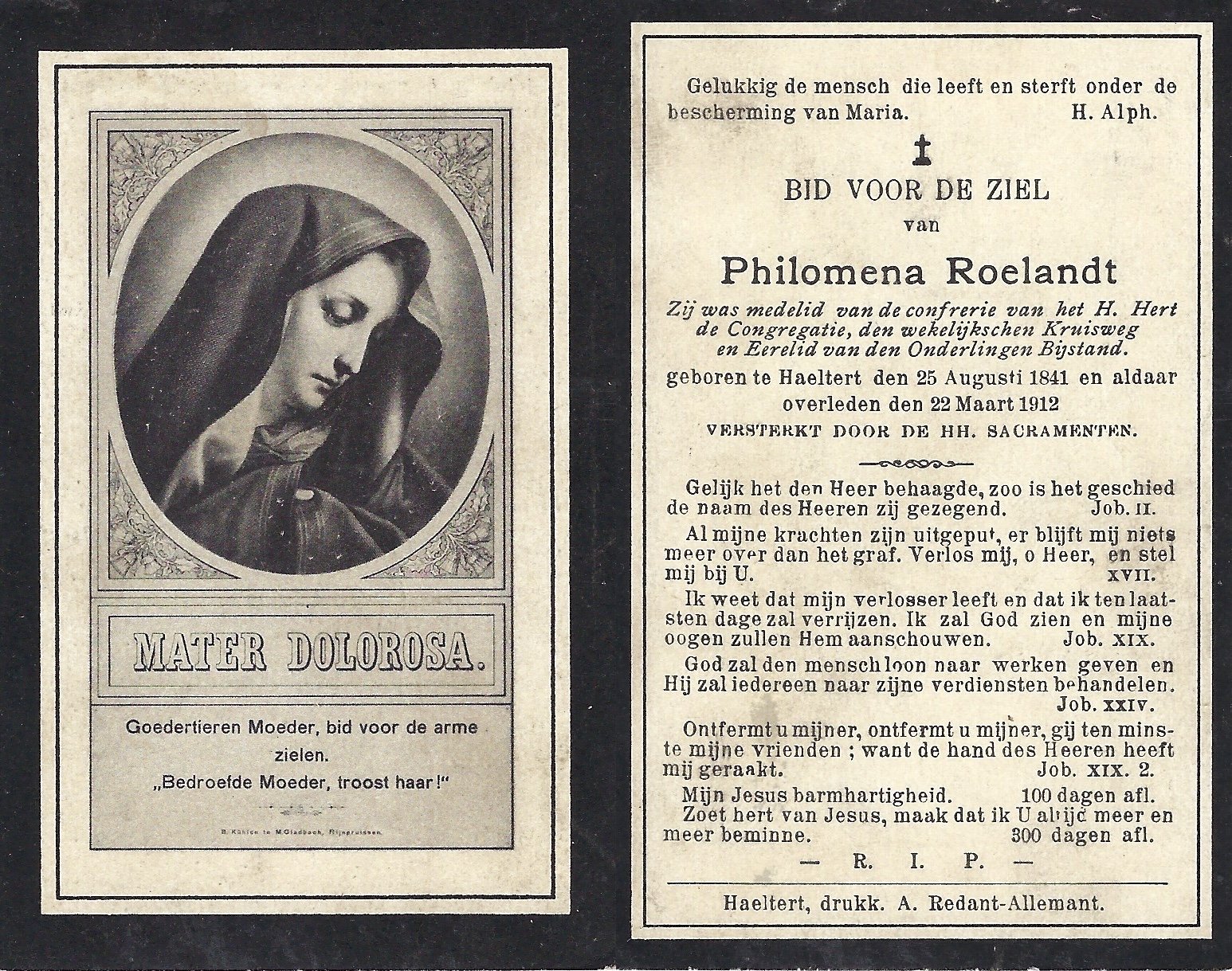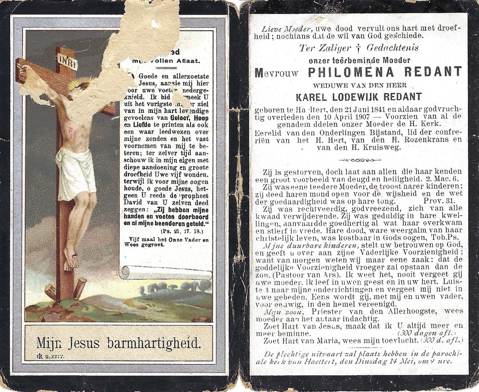 | Redant Philomena | Redant Karel Lodewijk | Haaltert | 21/06/1841 | Haaltert | 10/04/1907 |