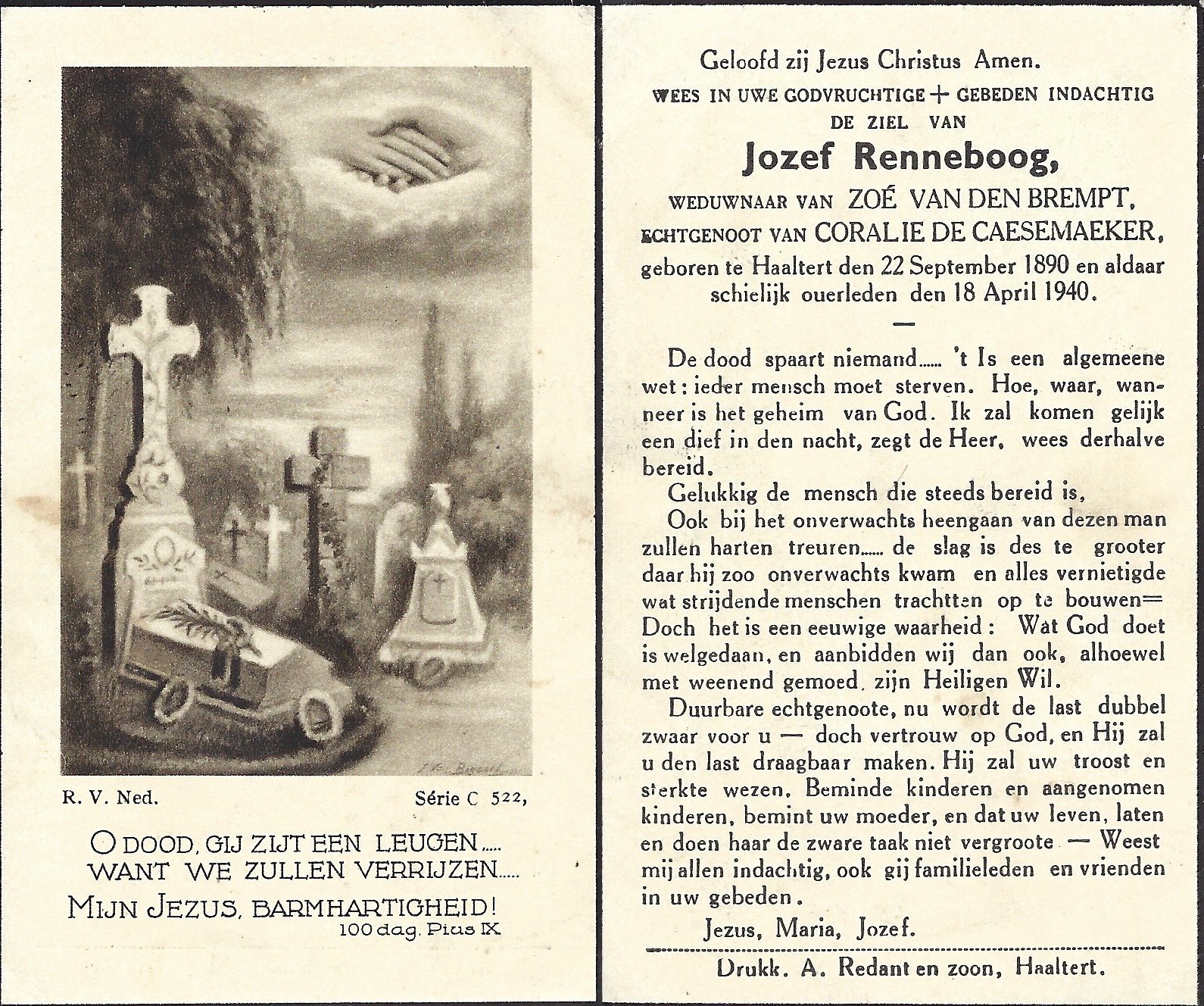 | Renneboog Jozef | Van Den Brempt Zoé en De Caesemaeker Coralie | Haaltert | 22/09/1890 | Haaltert | 18/04/1940 |