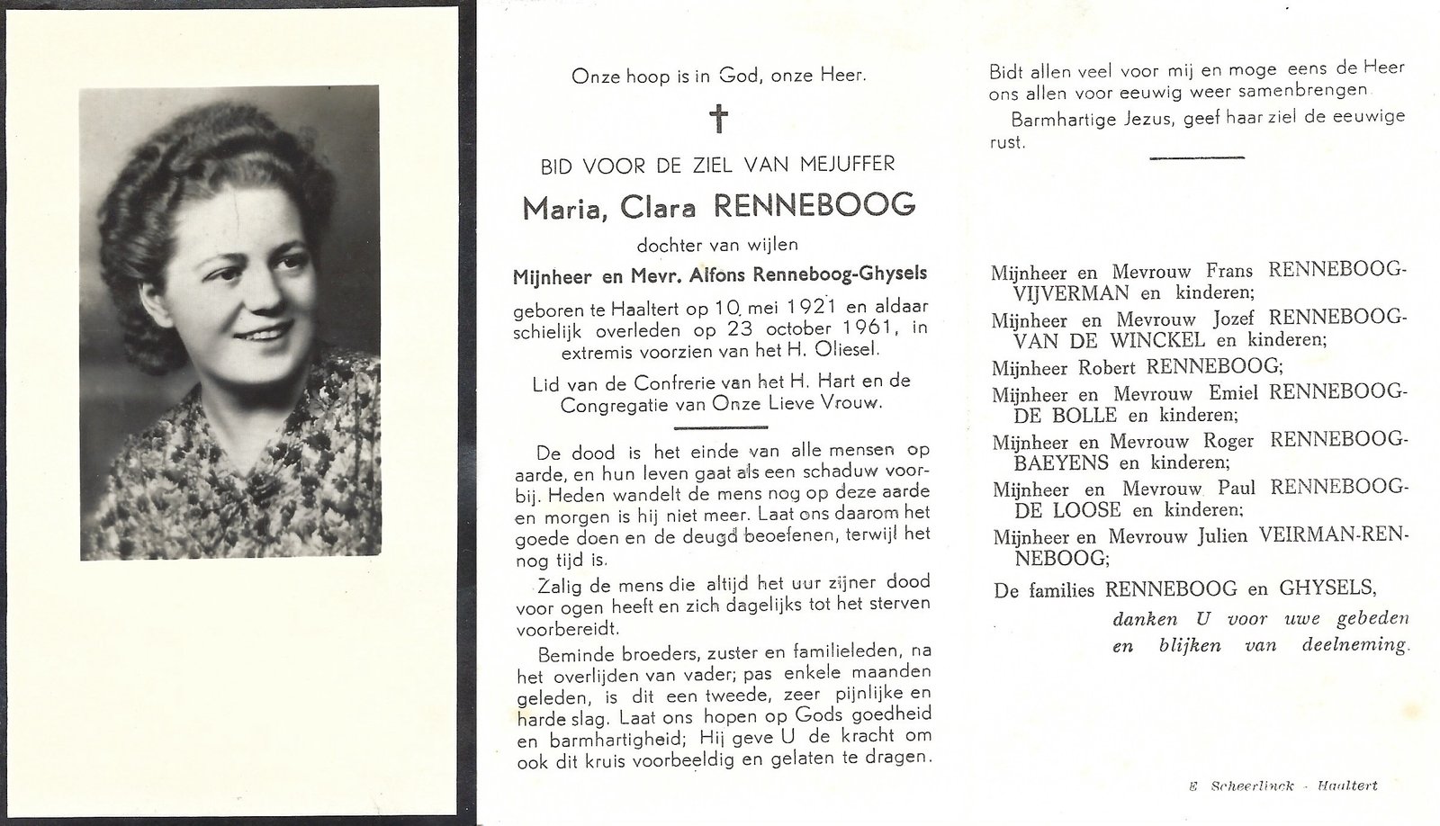 | Renneboog Maria Clara | | Haaltert | 10/05/1921 | Haaltert | 23/10/1961 |