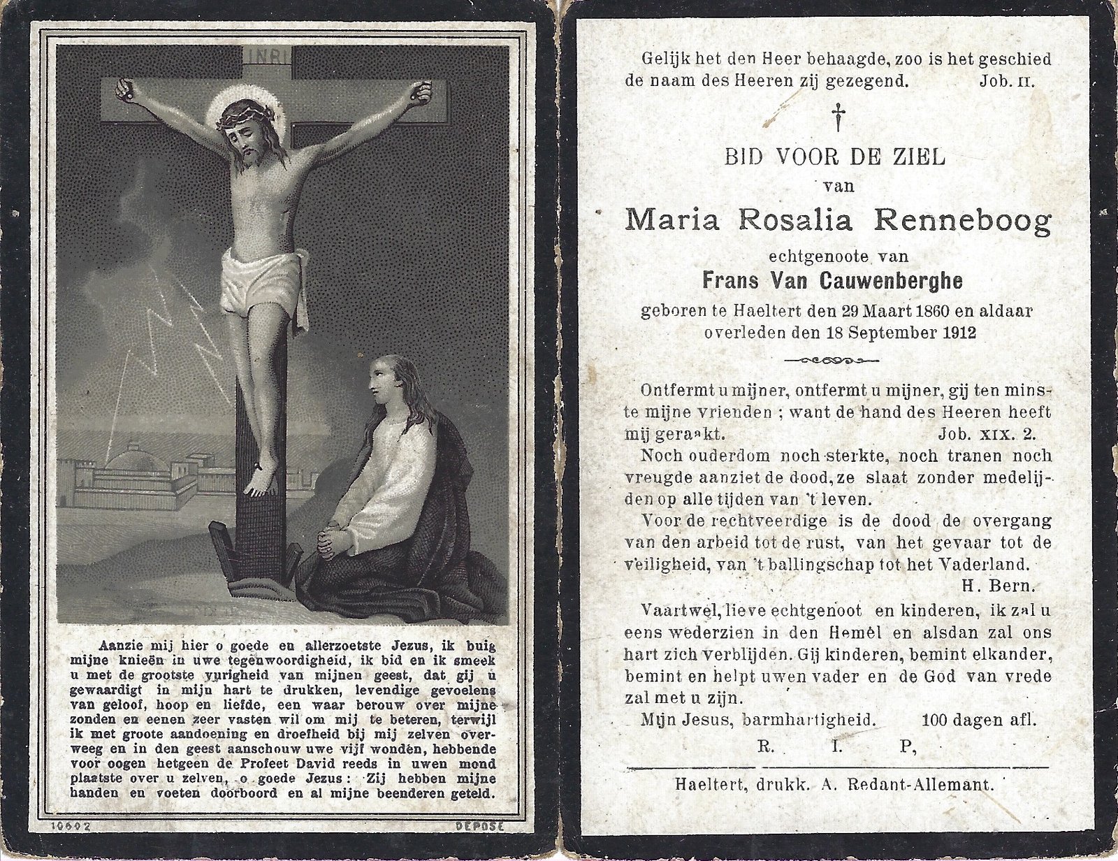 | Renneboog Maria Rosalia | Van Cauwenberghe Frans | Haaltert | 29/03/1860 | Haaltert | 18/09/1912 |