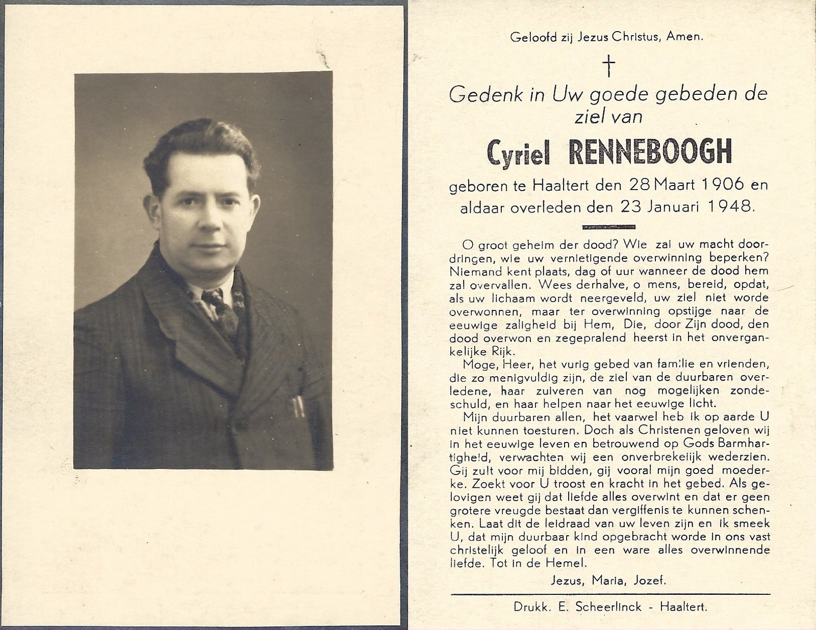 | Renneboogh Cyriel | | Haaltert | 28/03/1906 | Haaltert | 23/01/1948 |