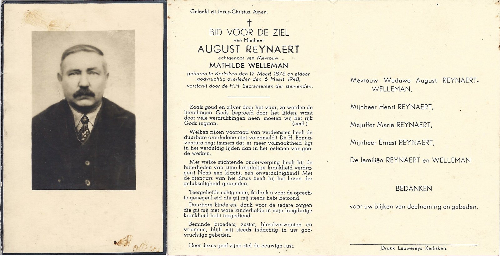 | Reynaert August | Welleman Mathilde | Kerksken | 17/03/1876 | Kerksken | 06/03/1948 |