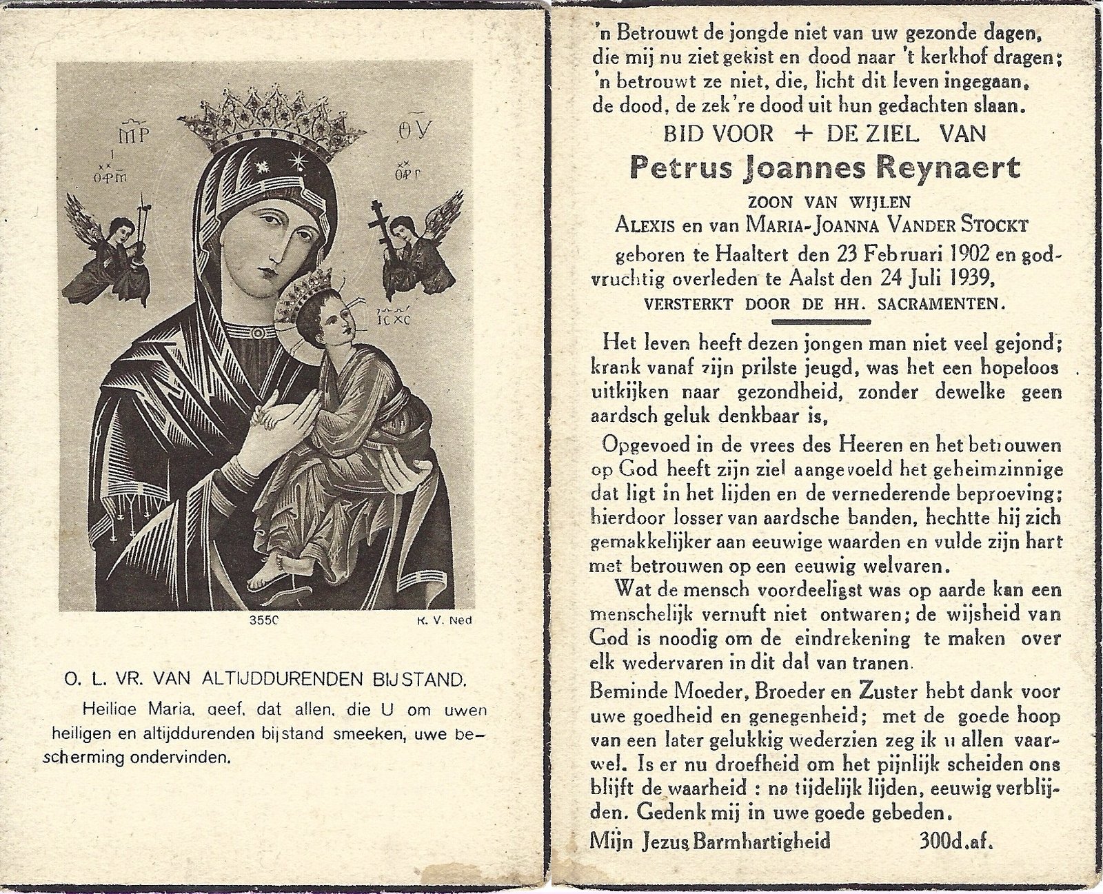 | Reynaert Petrus Joannes | | Haaltert | 23/02/1902 | Aalst | 24/07/1939 |