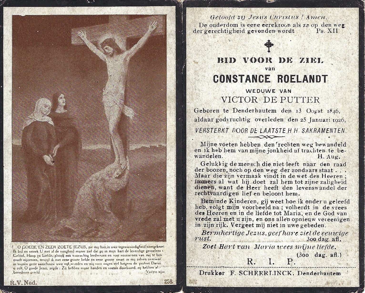 | Roelandt Constance | De Putter Victor | Denderhoutem | 13/08/1846 | Denderhoutem | 25/01/1926 |
