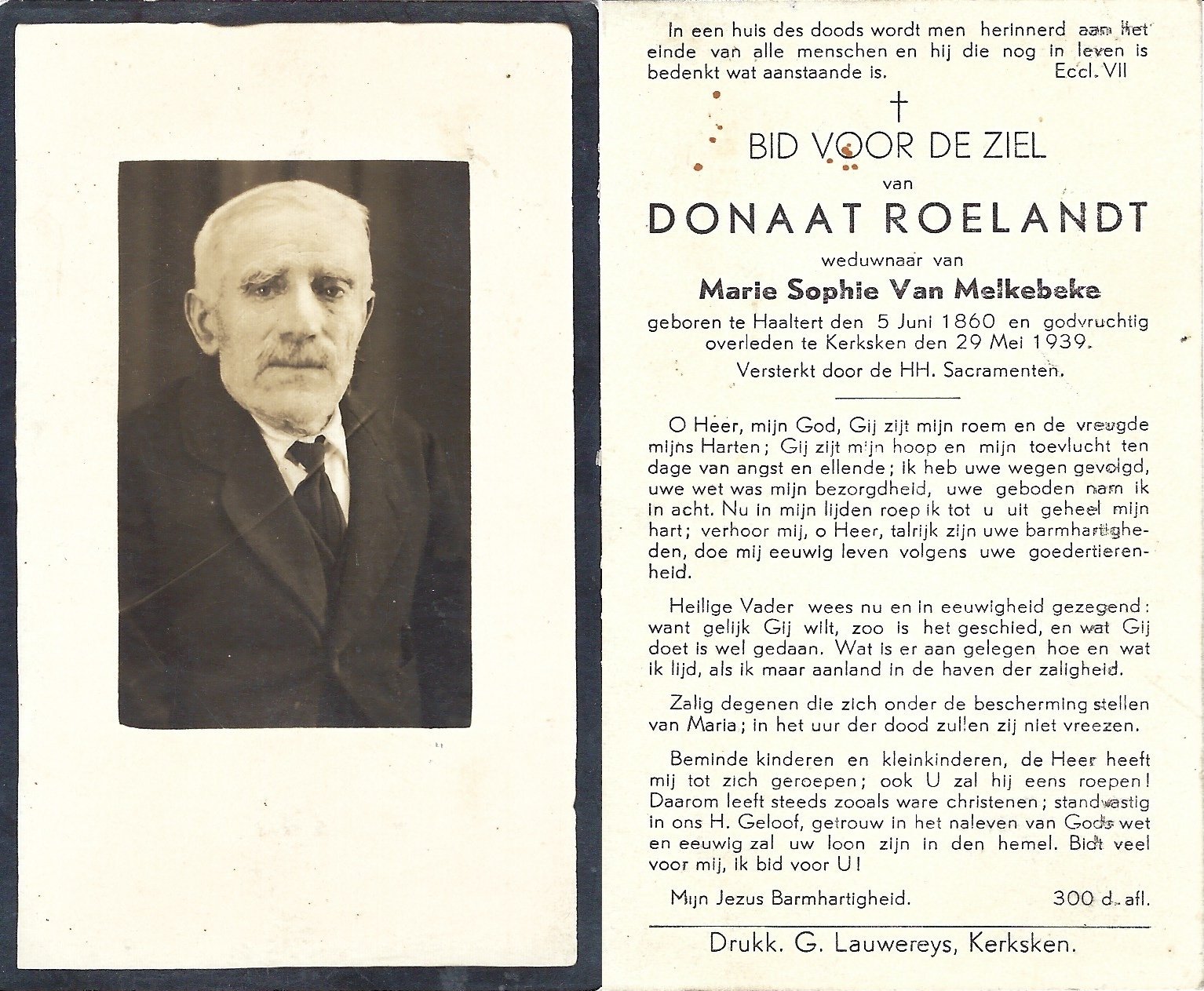 | Roelandt Donaat | Van Melkebeke Marie Sophie | Haaltert | 05/05/1860 | Kerksken | 29/05/1939 |