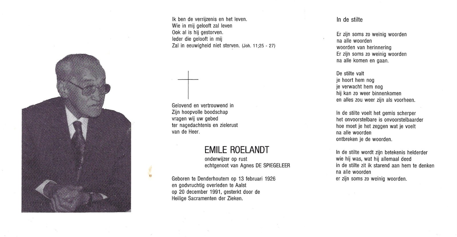 | Roelandt Emile | De Spiegeleer Agnes | Denderhoutem | 13/02/1926 | Aalst | 20/12/1991 |