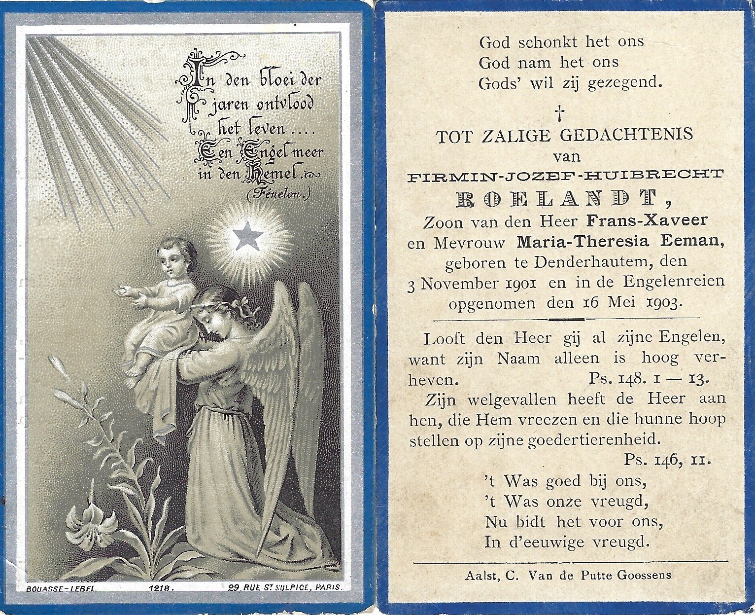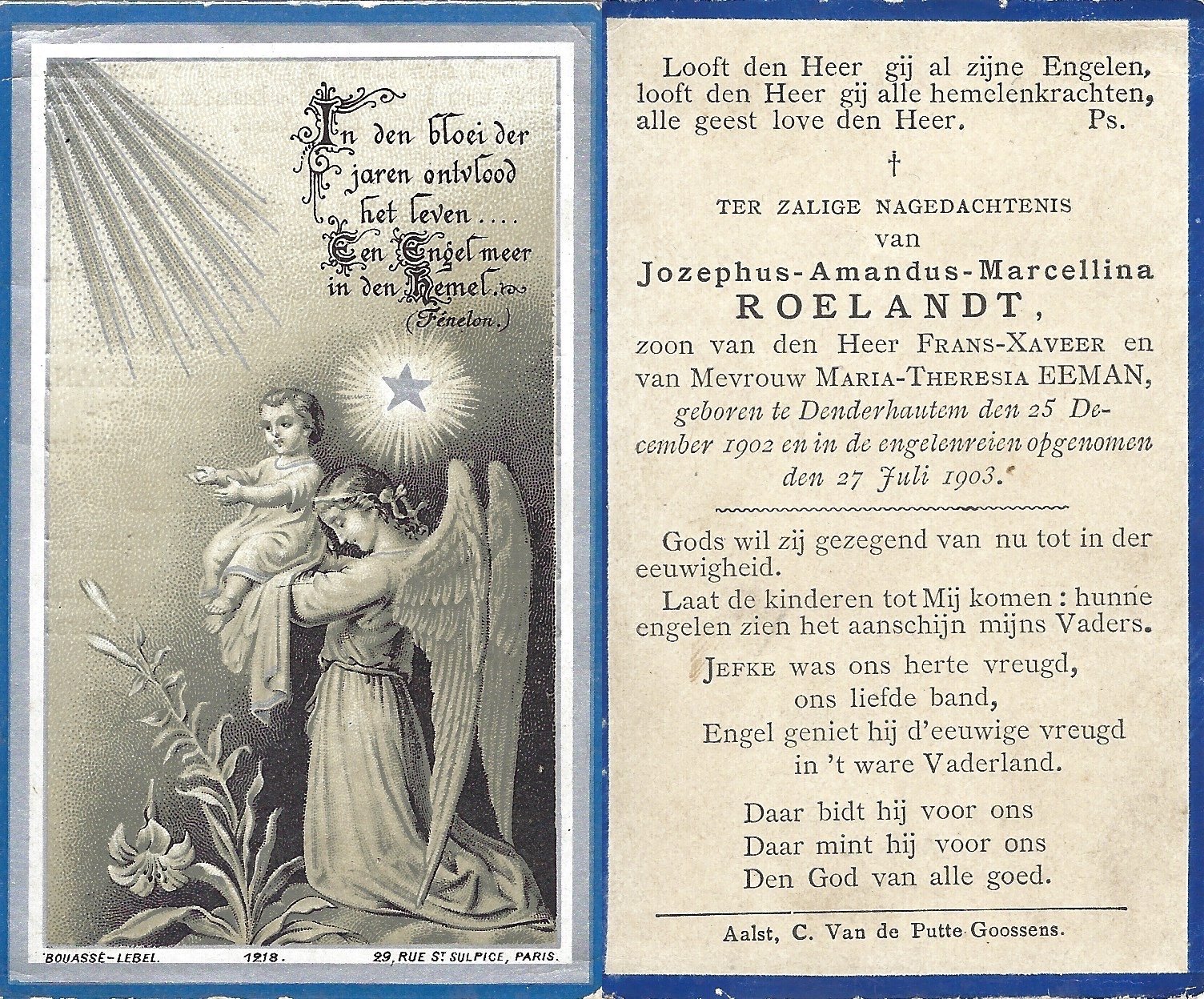 | Roelandt Jozephus Amandus Marcellina | | Denderhoutem | 25/12/1902 | Denderhoutem | 27/07/1903 |