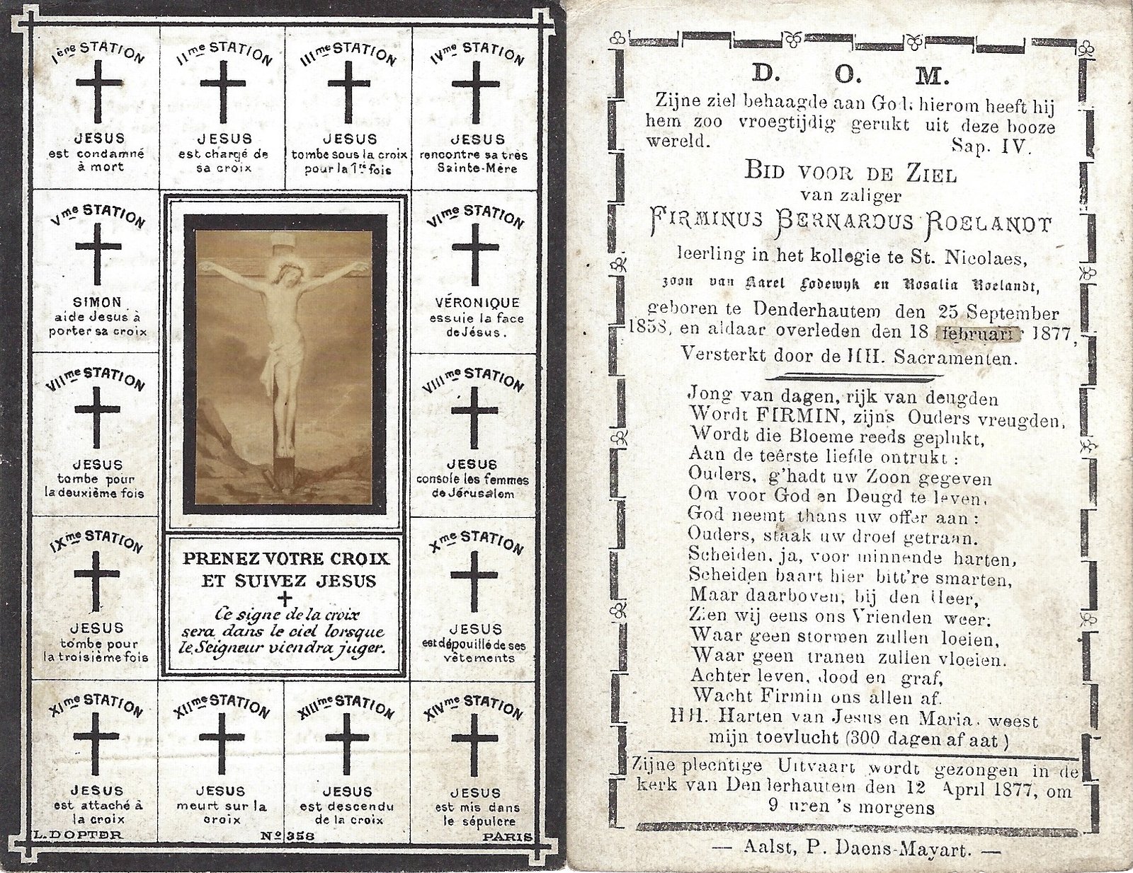 | Roelandt Firminus Bernardus | | Denderhoutem | 25/09/1858 | Denderhoutem | 18/02/1877 |