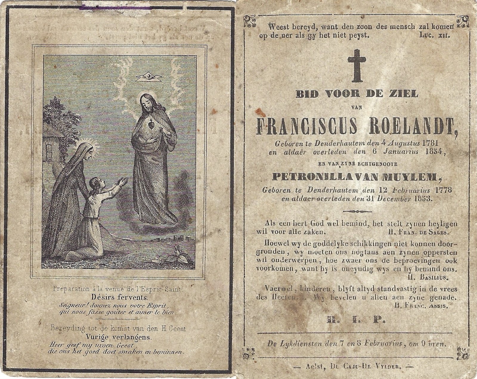 | Roelandt Franciscus | Van Muylem Petronilla | Denderhoutem | O4/08/1781 | Denderhoutem | 06/01/1854 |