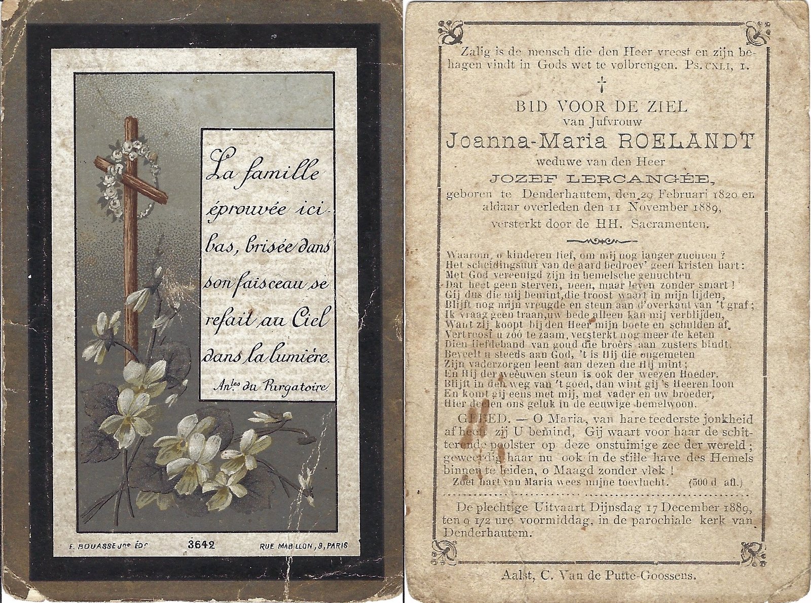 | Roelandt Joanna Maria | Lercangée Jozef | Denderhoutem | 20/02/1820 | Denderhoutem | 11/11/1889 |