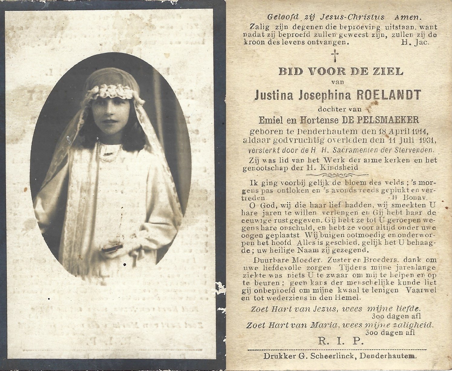 | Roelandt Justina Josephina | | Denderhoutem | 18/04/1914 | Denderhoutem | 11/07/1931 |