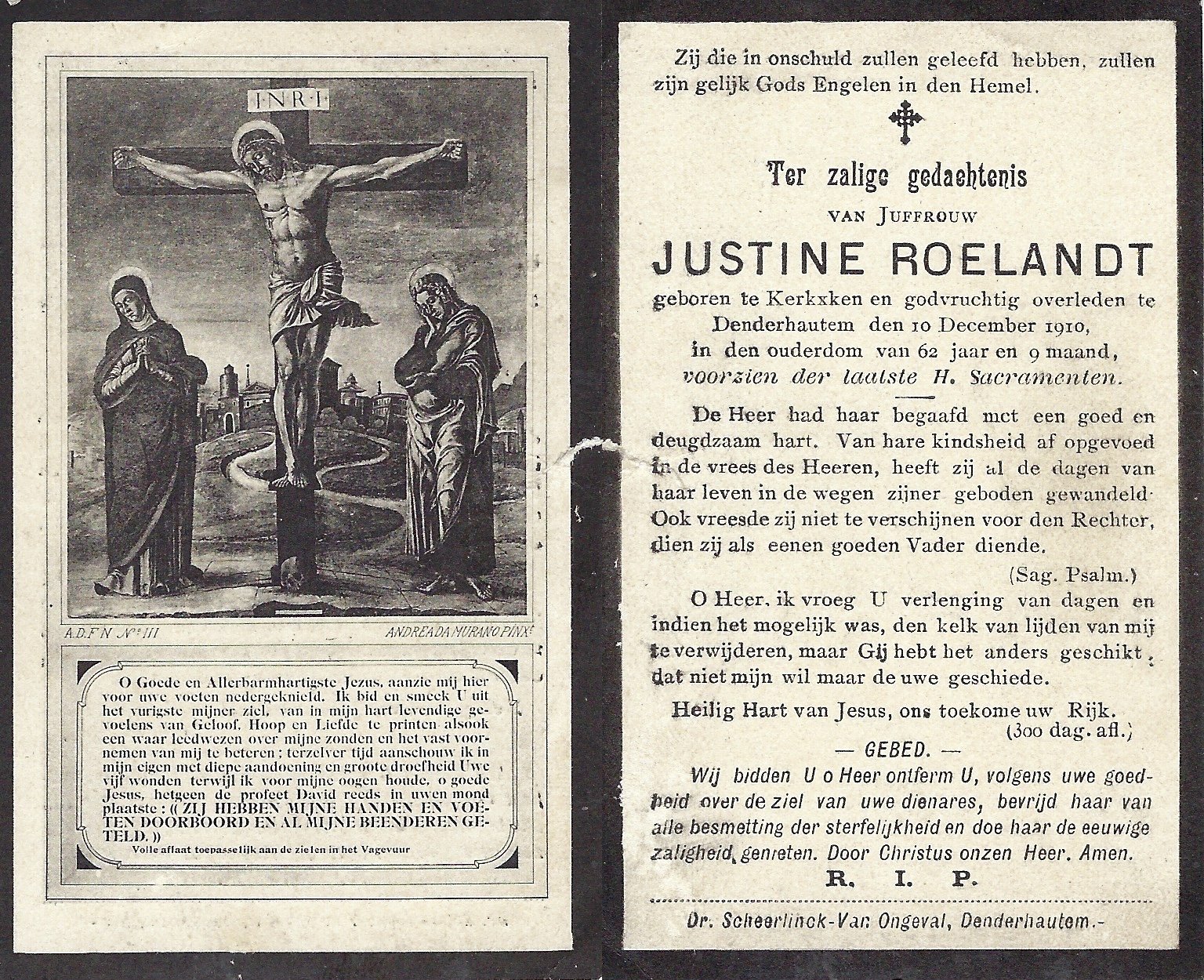 | Roelandt Justine | | Kerksken | 03/05/1848 | Denderhoutem | 10/12/1910 |