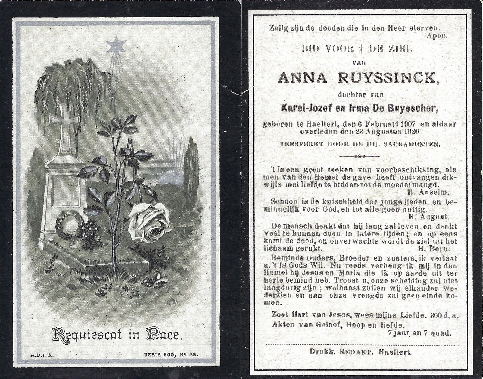 | Ruyssinck Anna | | Haaltert | 06/02/1907 | Haaltert | 23/08/1920 |